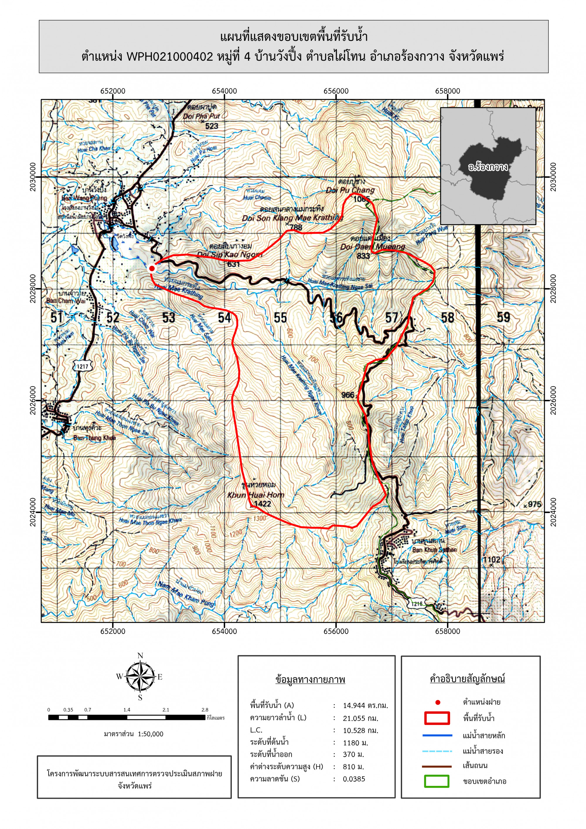 รูปภาพแผนที่แสดงขอบเขตพื้นที่รับน้ำ