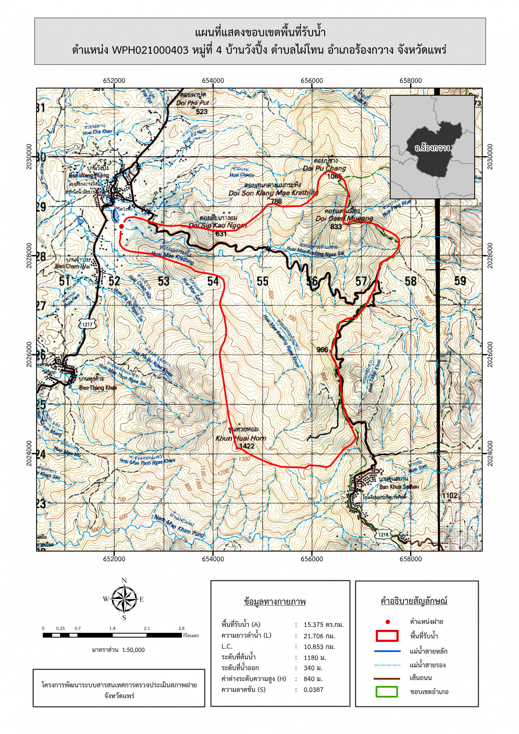 รูปภาพแผนที่แสดงขอบเขตพื้นที่รับน้ำ
