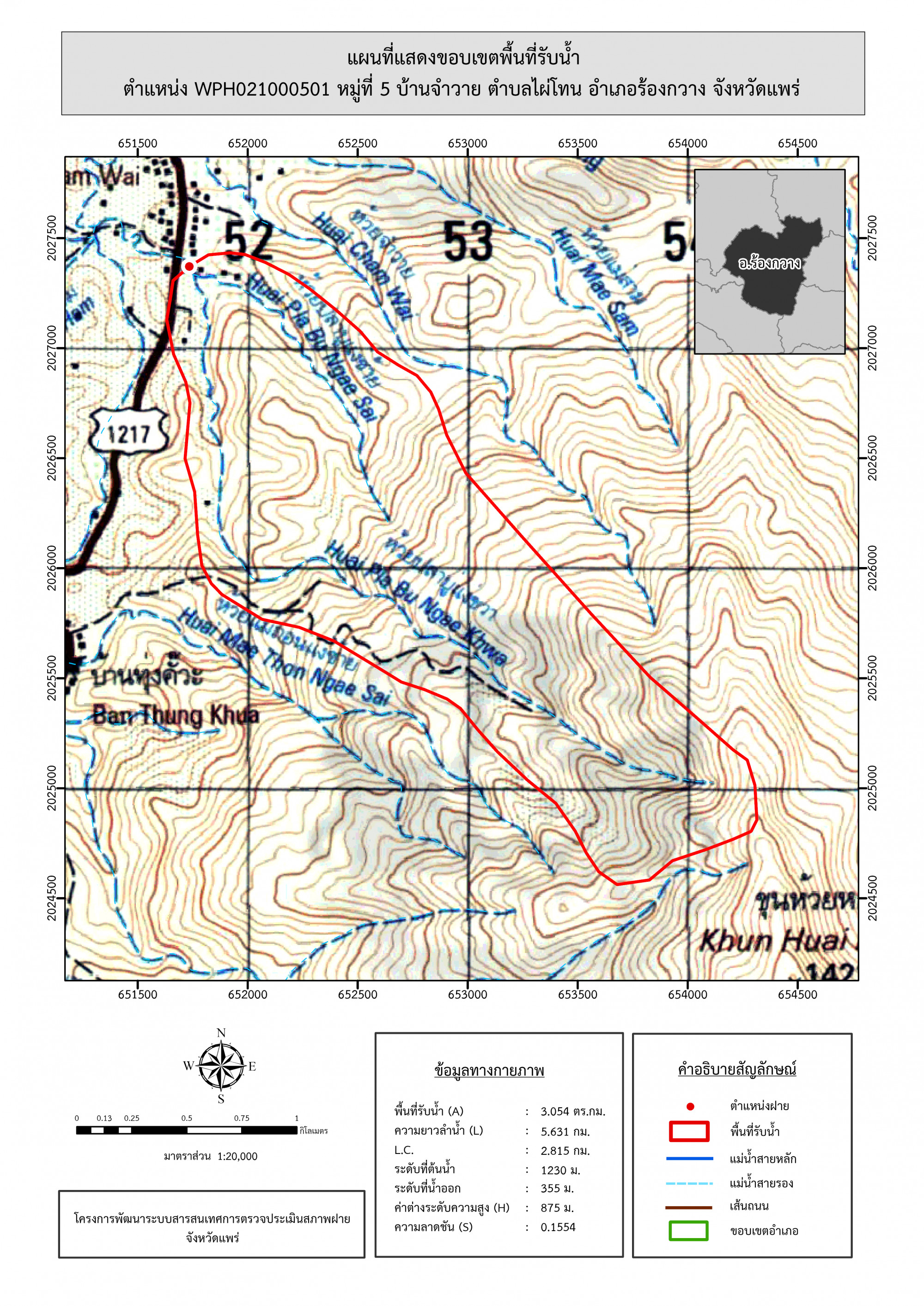 รูปภาพแผนที่แสดงขอบเขตพื้นที่รับน้ำ