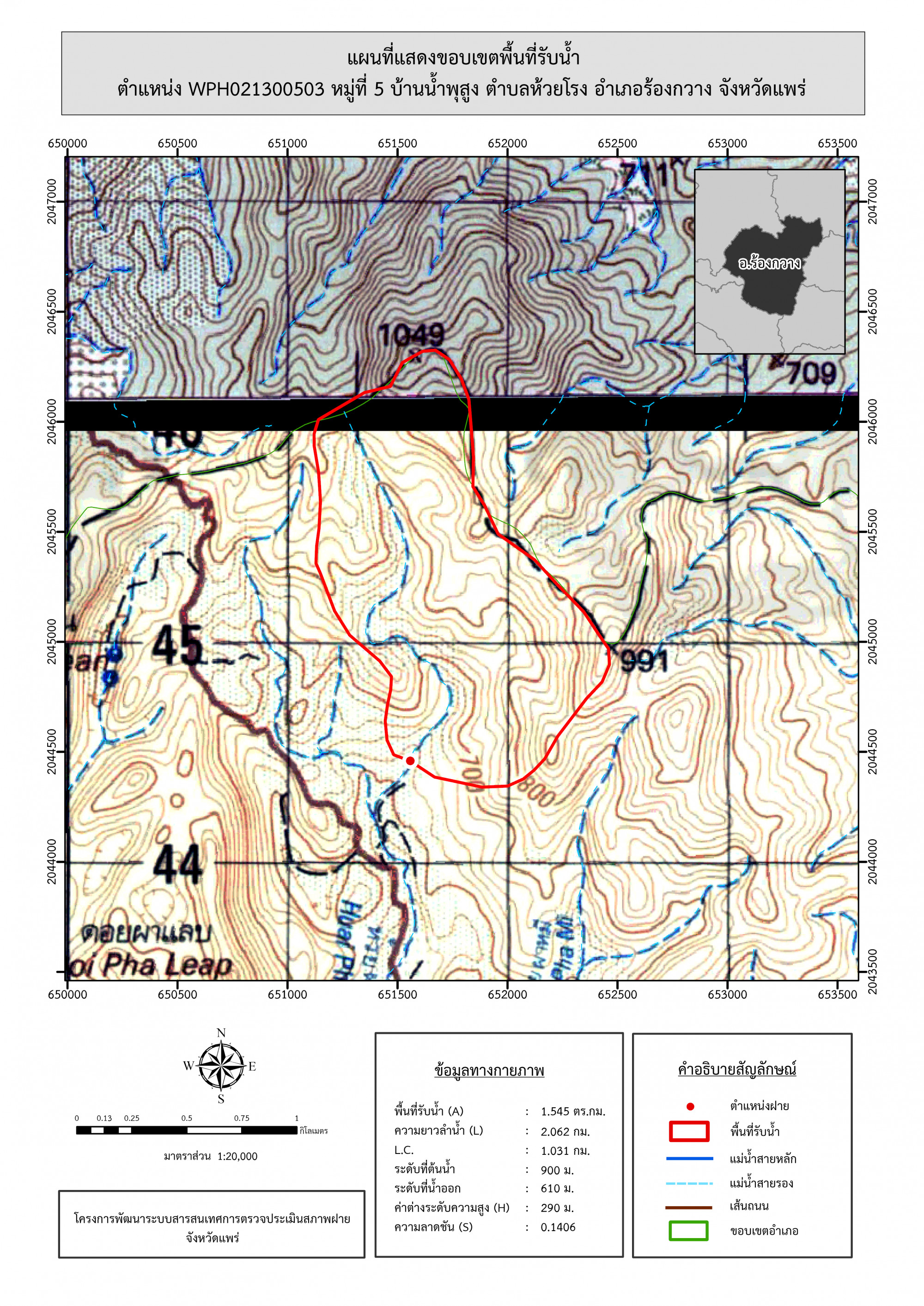 รูปภาพแผนที่แสดงขอบเขตพื้นที่รับน้ำ