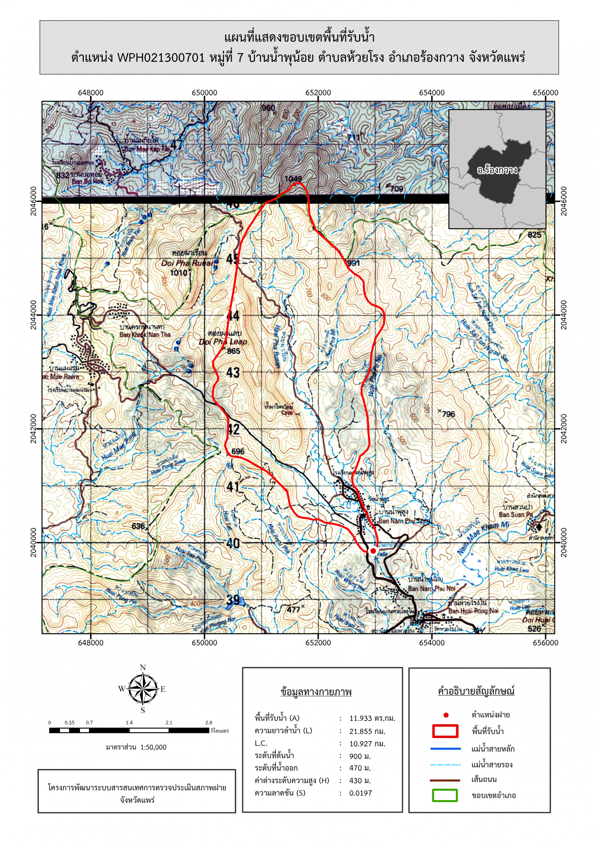 รูปภาพแผนที่แสดงขอบเขตพื้นที่รับน้ำ