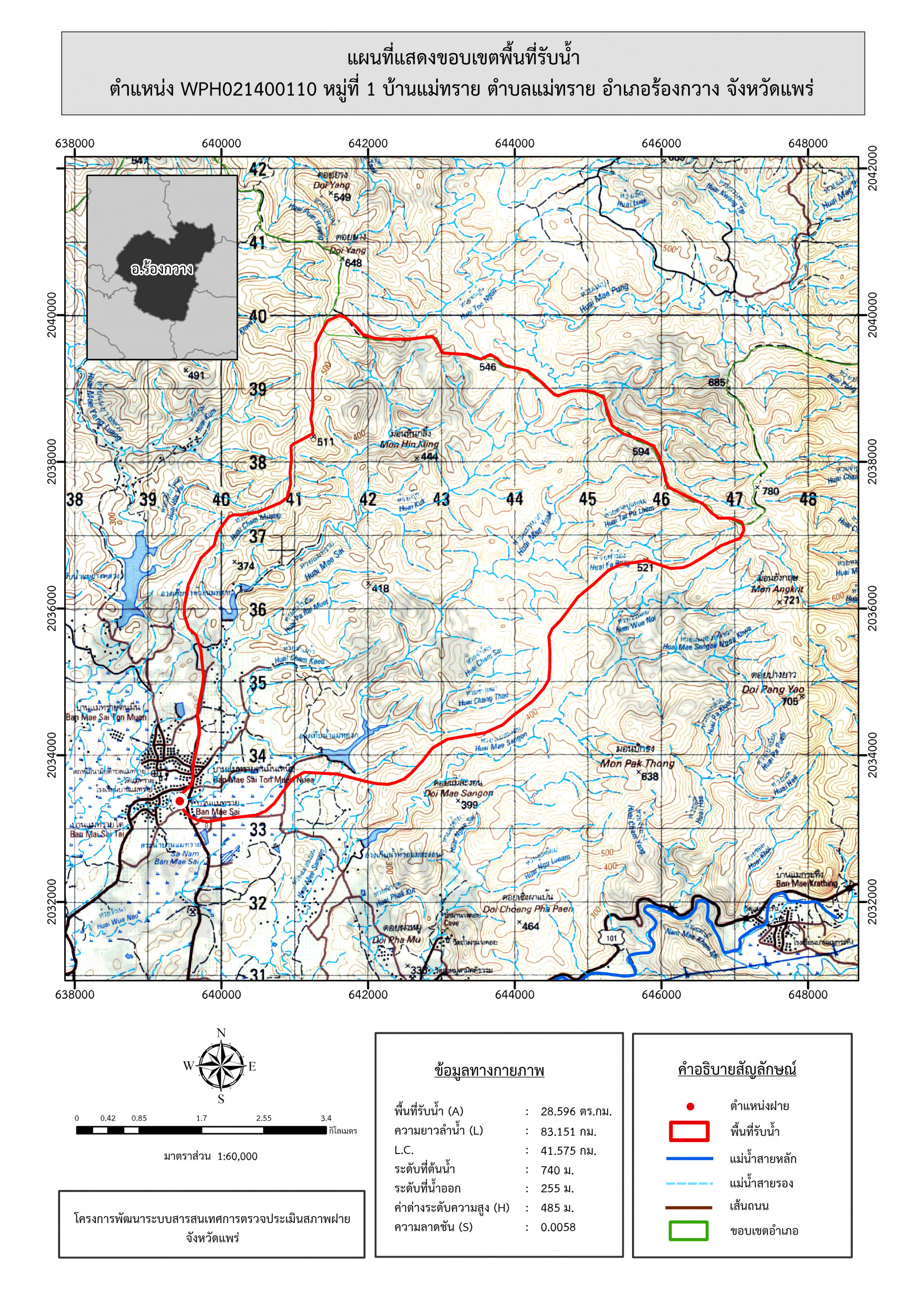 รูปภาพแผนที่แสดงขอบเขตพื้นที่รับน้ำ