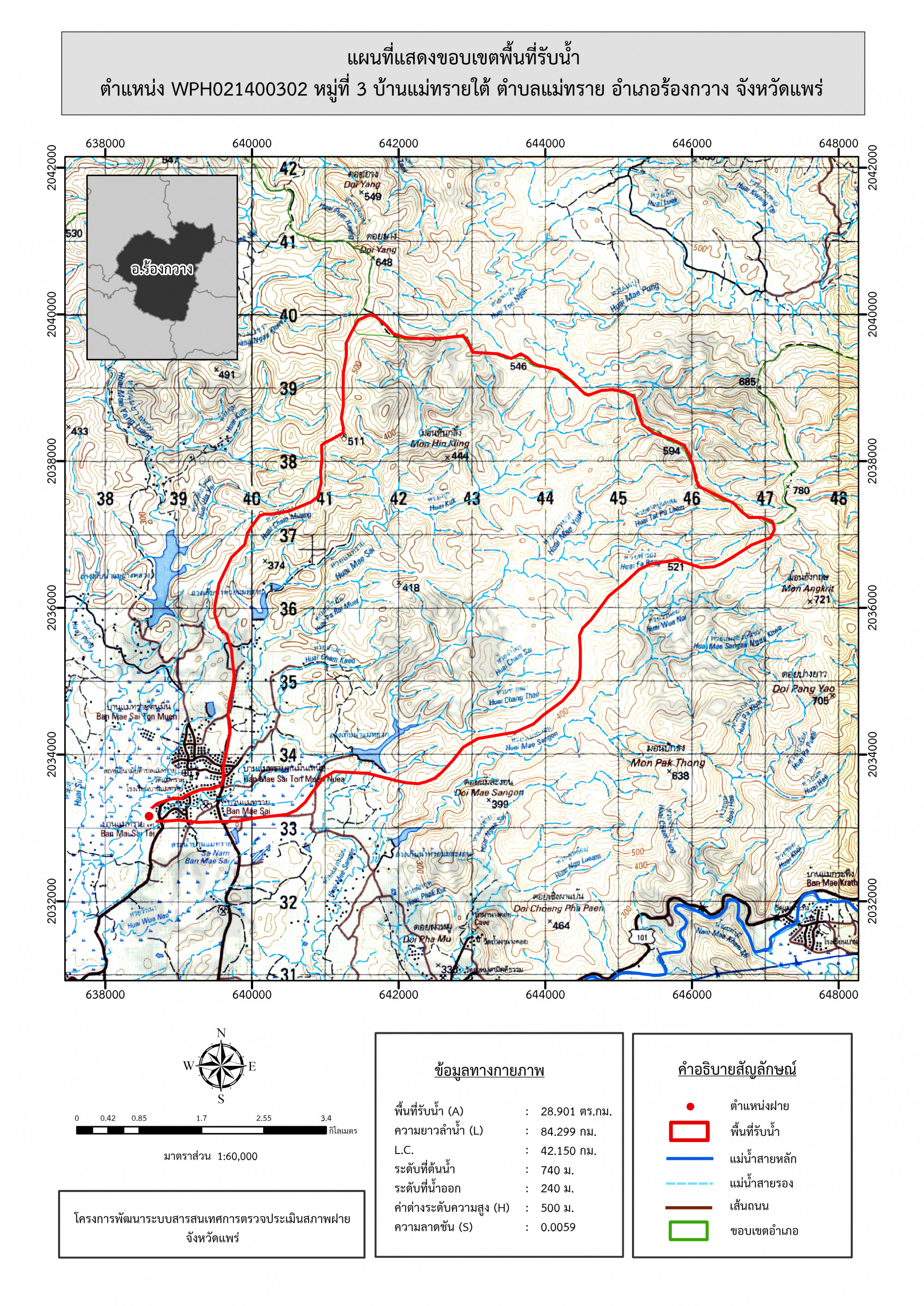 รูปภาพแผนที่แสดงขอบเขตพื้นที่รับน้ำ