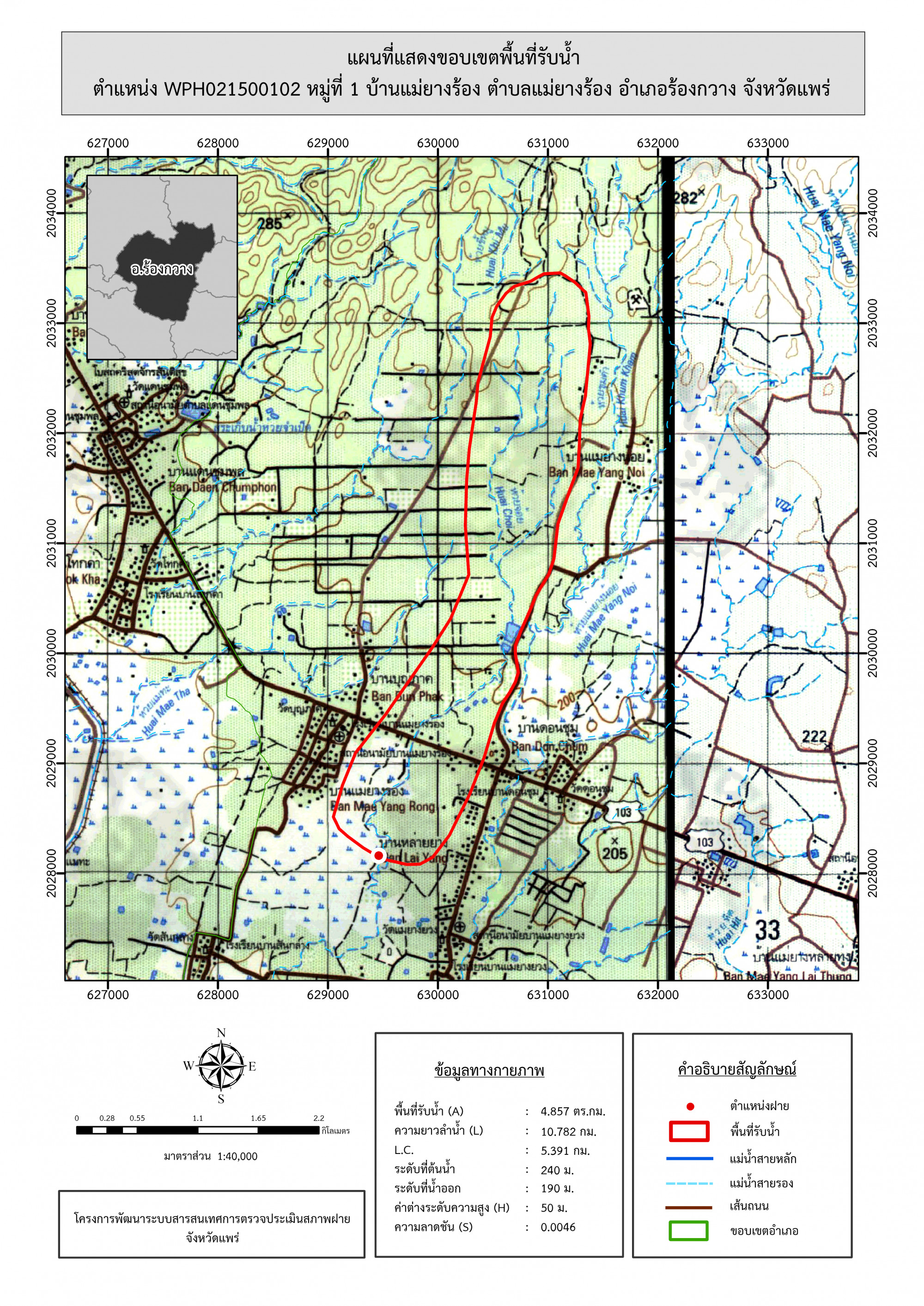 รูปภาพแผนที่แสดงขอบเขตพื้นที่รับน้ำ