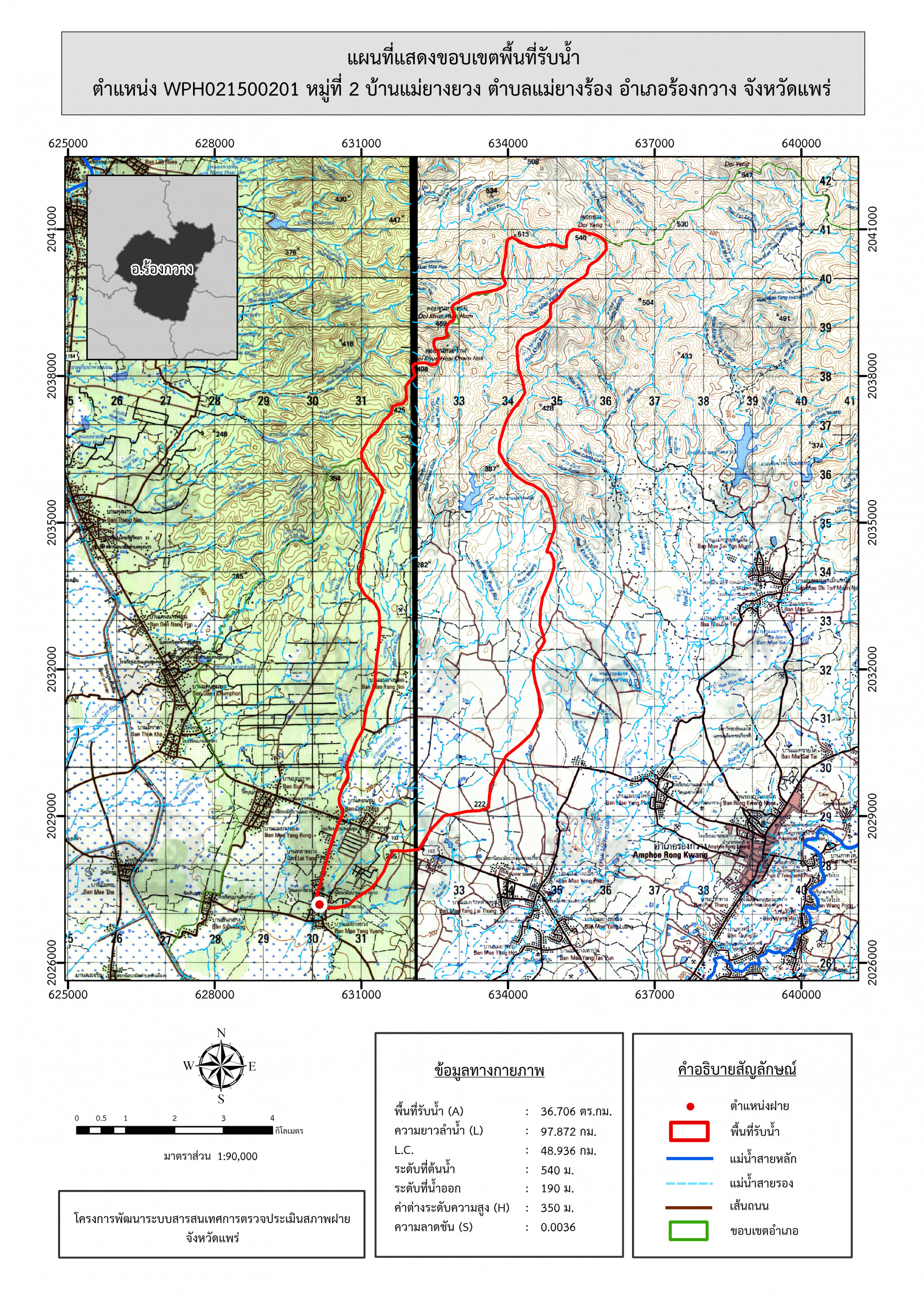 รูปภาพแผนที่แสดงขอบเขตพื้นที่รับน้ำ