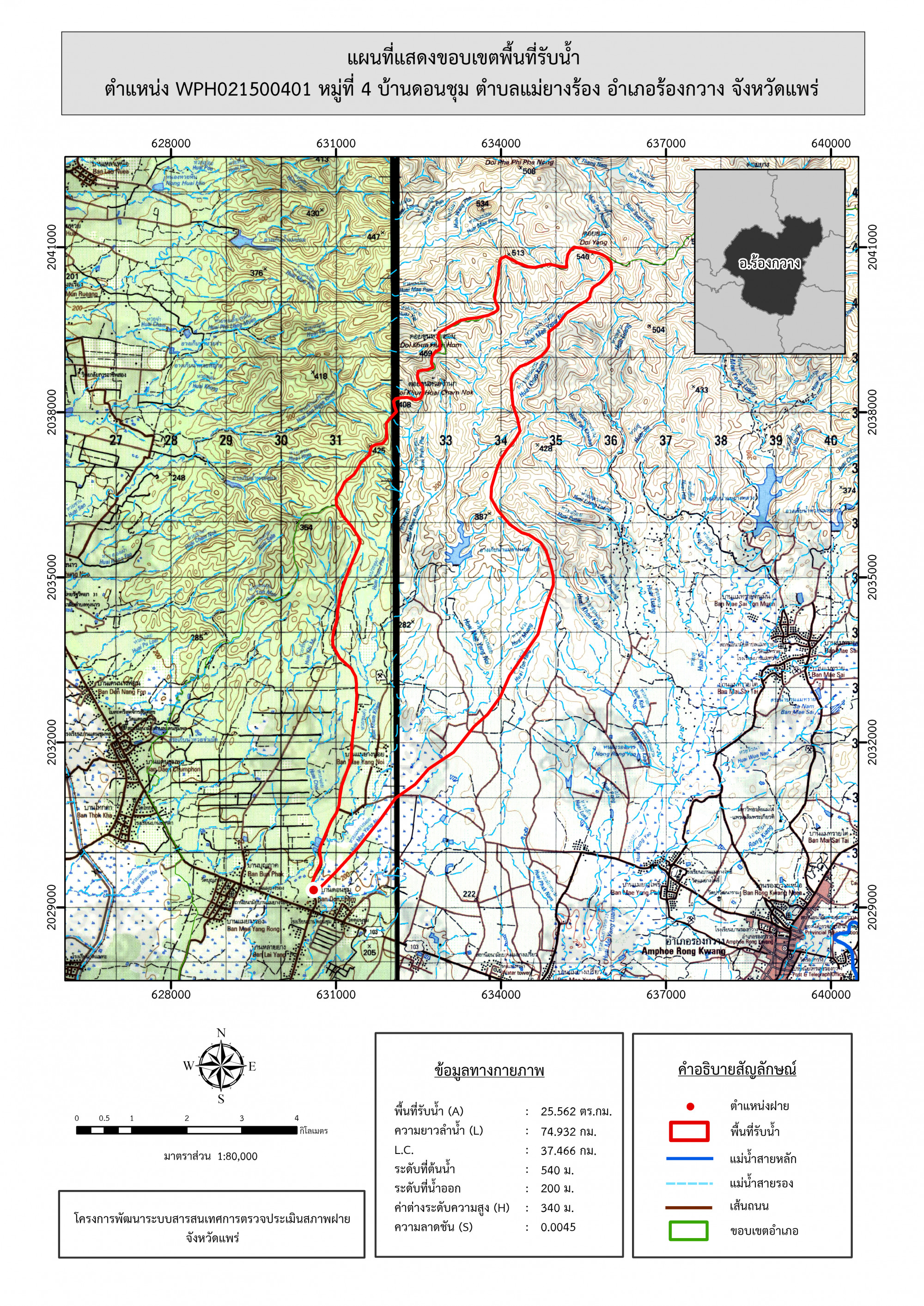 รูปภาพแผนที่แสดงขอบเขตพื้นที่รับน้ำ