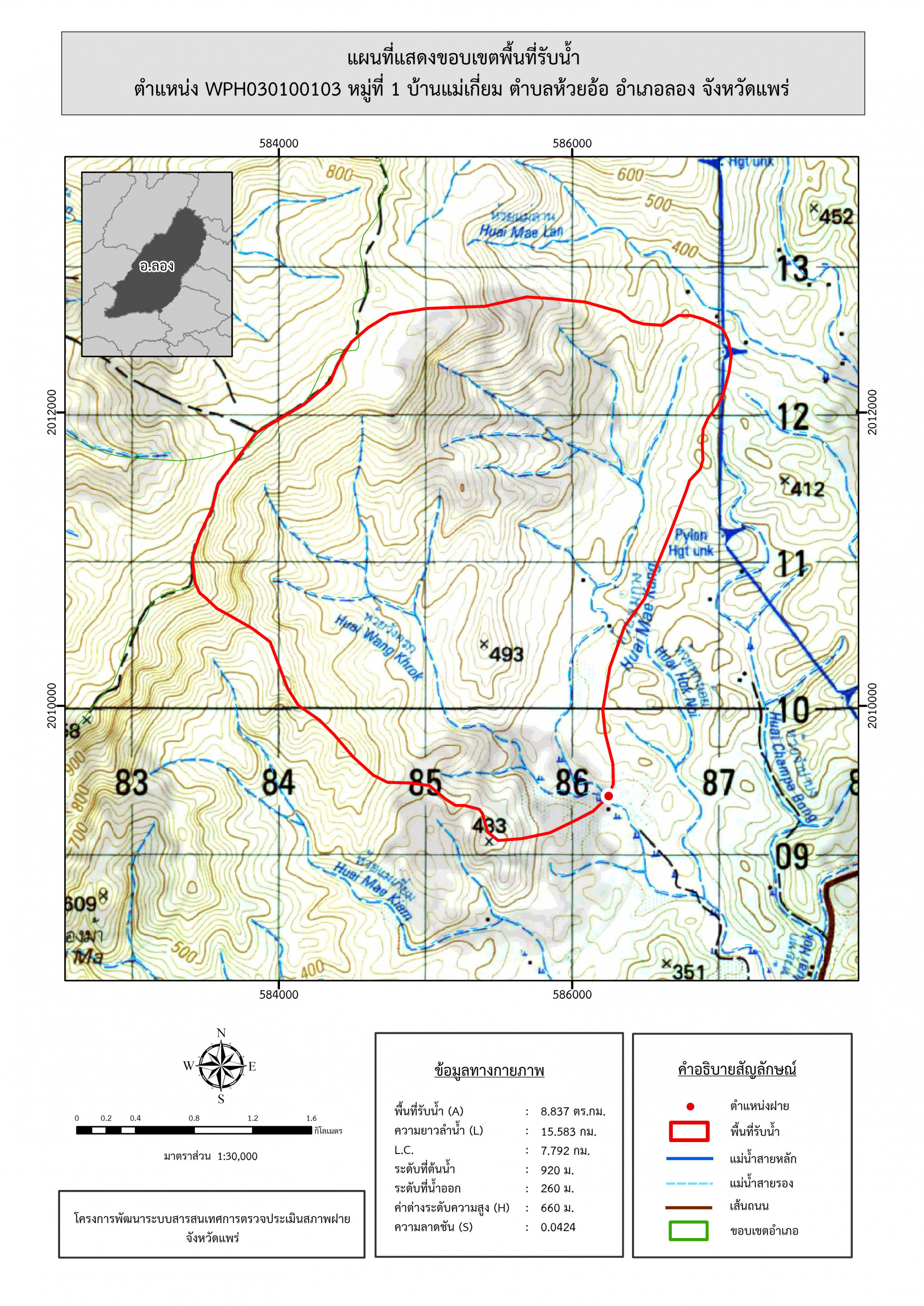 รูปภาพแผนที่แสดงขอบเขตพื้นที่รับน้ำ