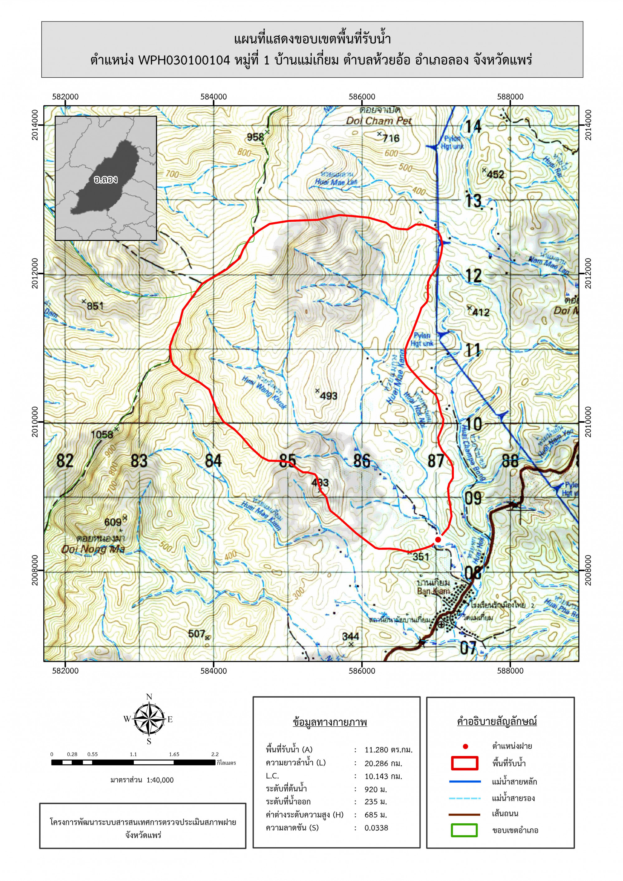 รูปภาพแผนที่แสดงขอบเขตพื้นที่รับน้ำ