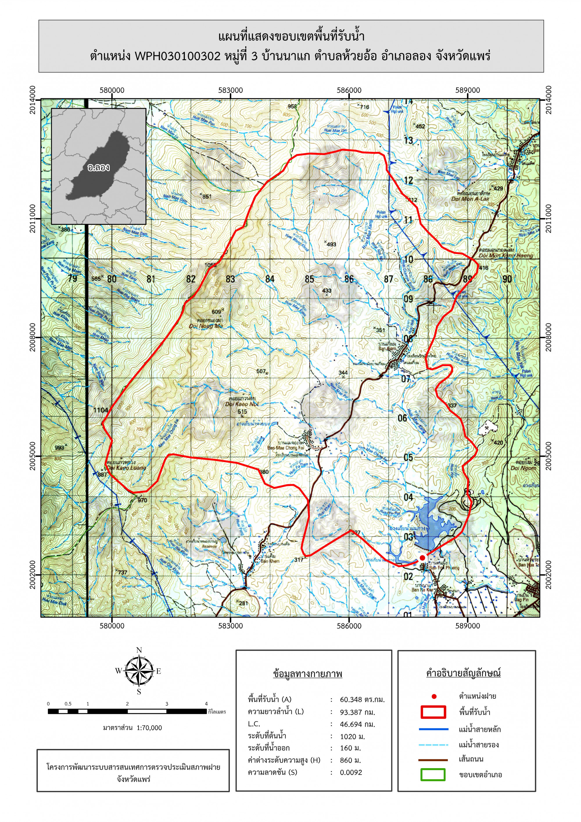 รูปภาพแผนที่แสดงขอบเขตพื้นที่รับน้ำ