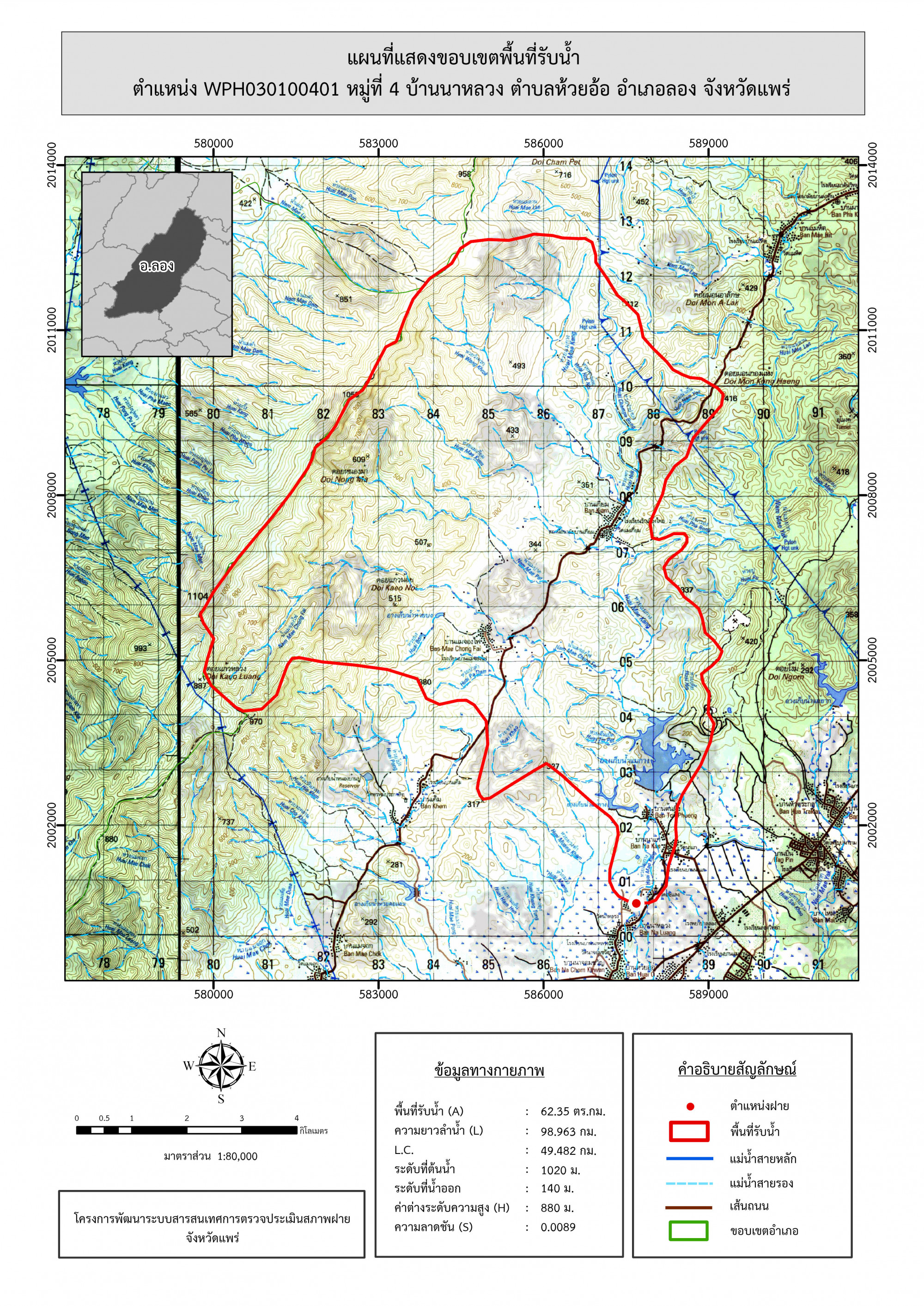 รูปภาพแผนที่แสดงขอบเขตพื้นที่รับน้ำ