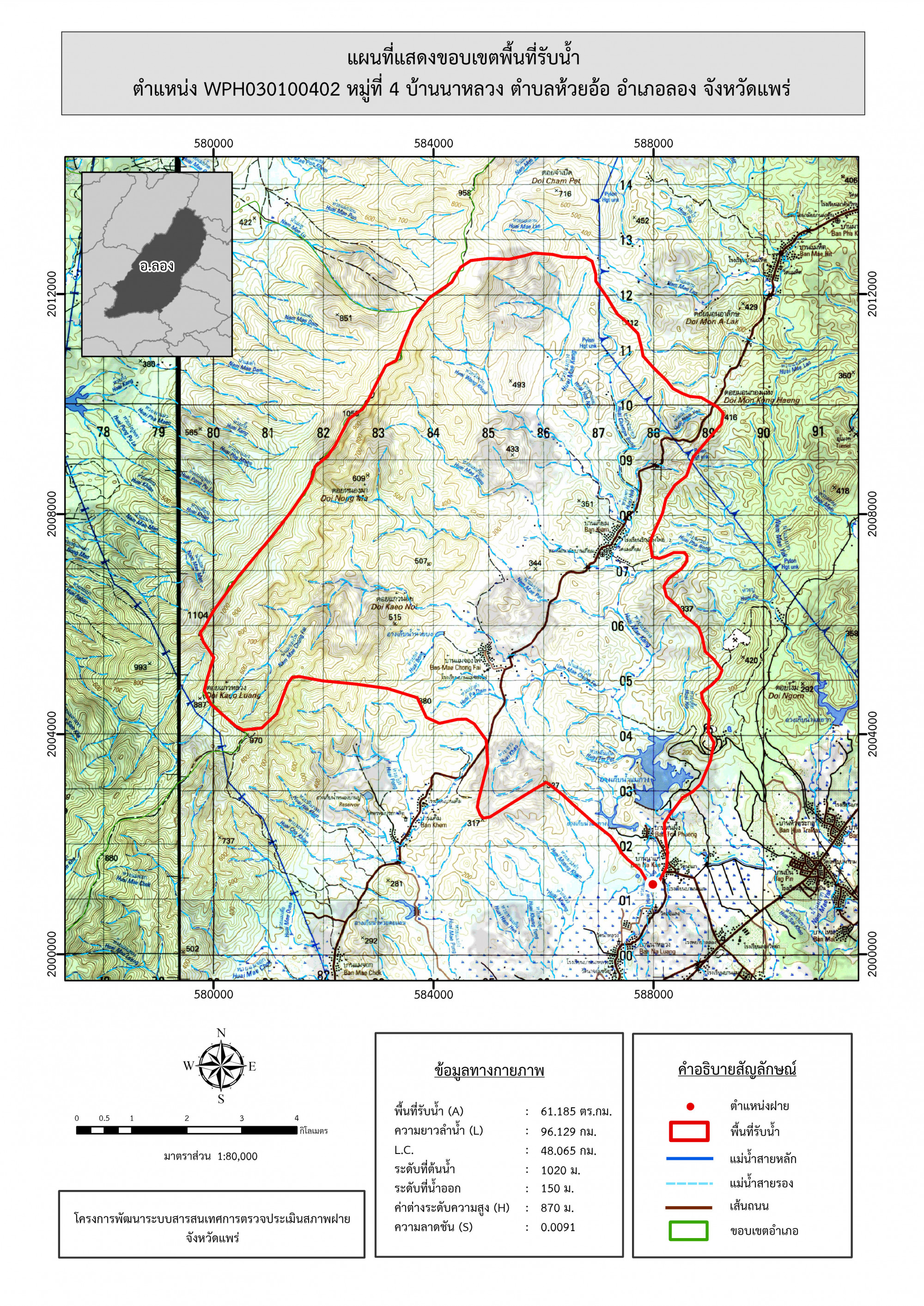 รูปภาพแผนที่แสดงขอบเขตพื้นที่รับน้ำ