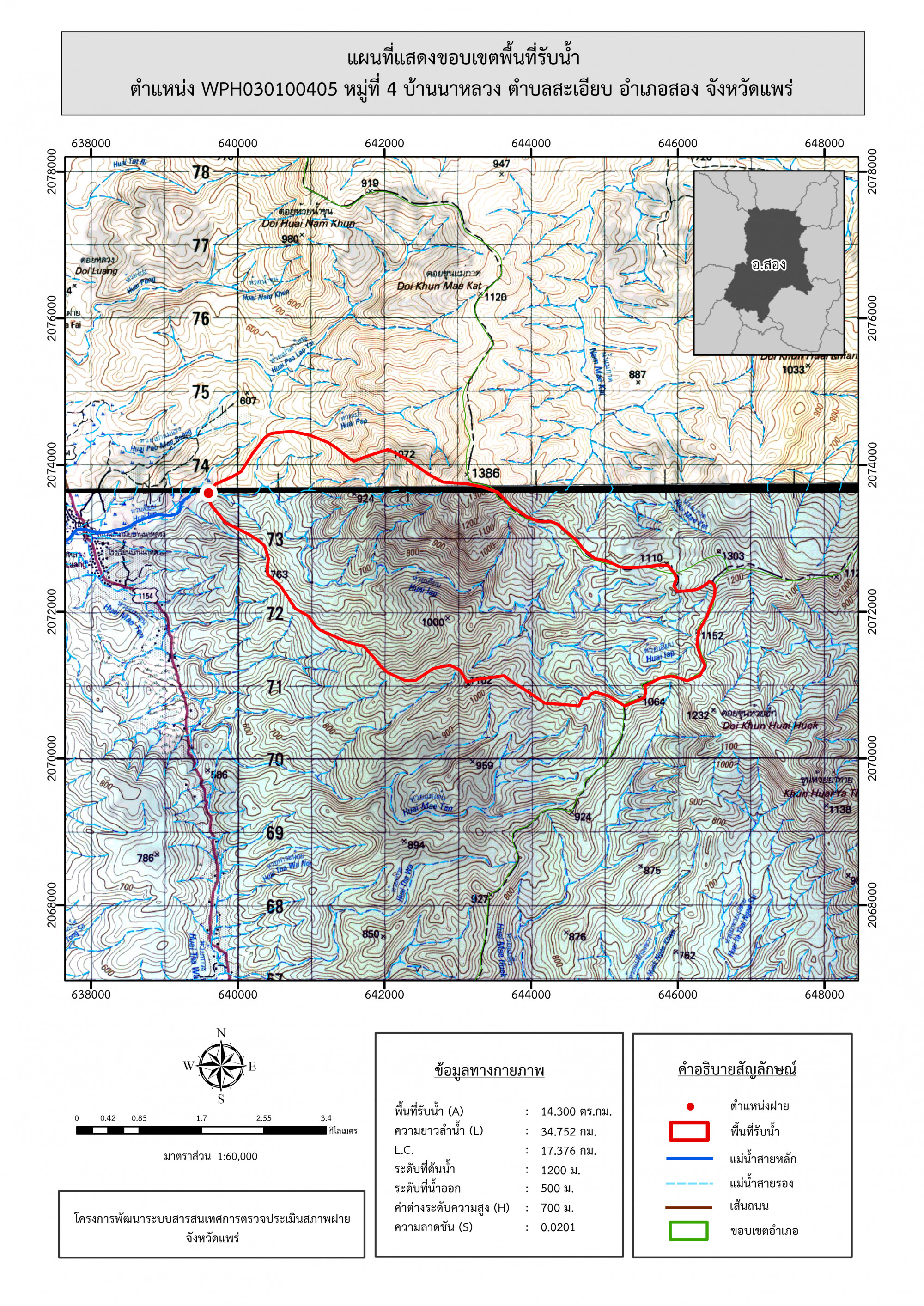 รูปภาพแผนที่แสดงขอบเขตพื้นที่รับน้ำ