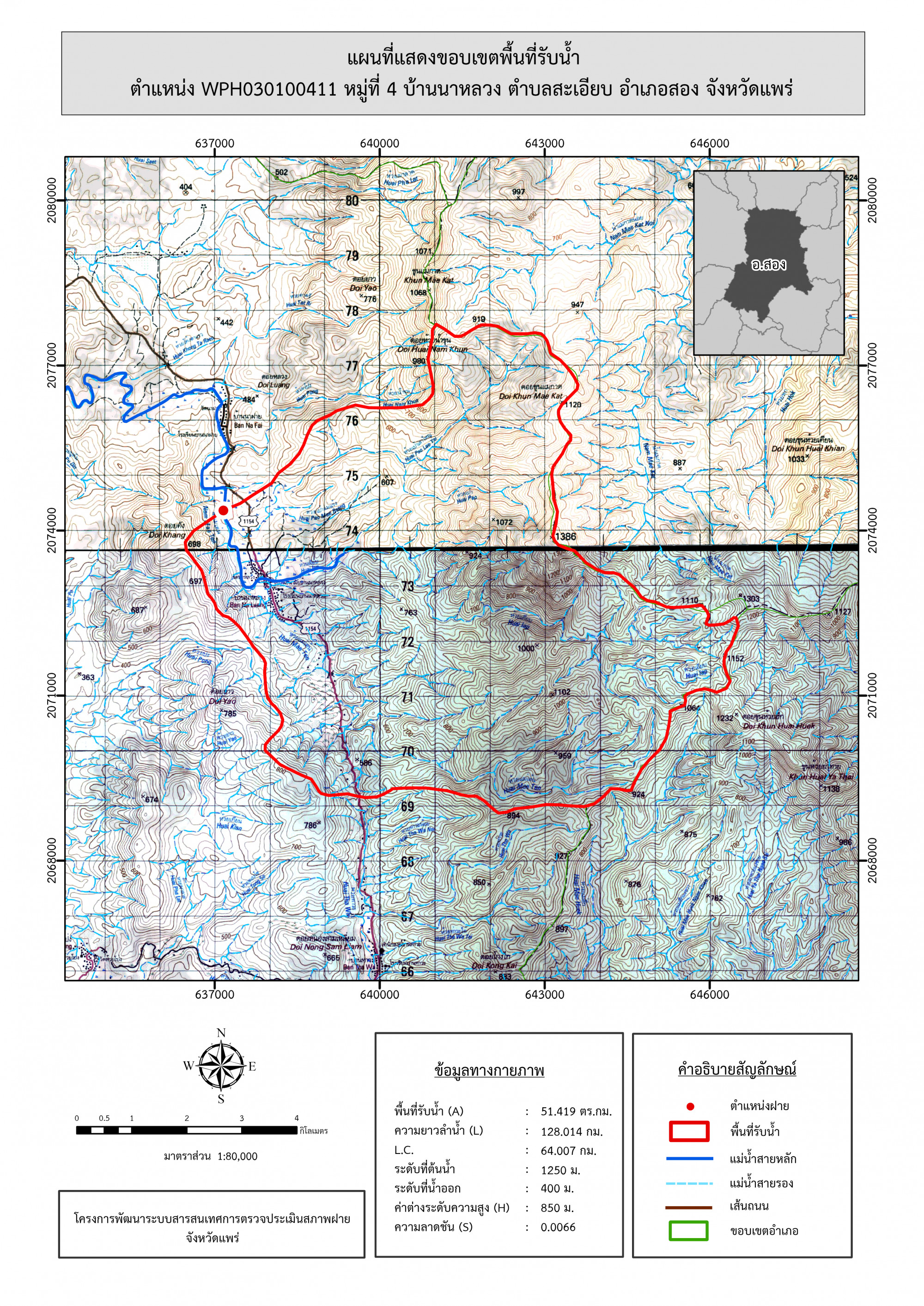 รูปภาพแผนที่แสดงขอบเขตพื้นที่รับน้ำ