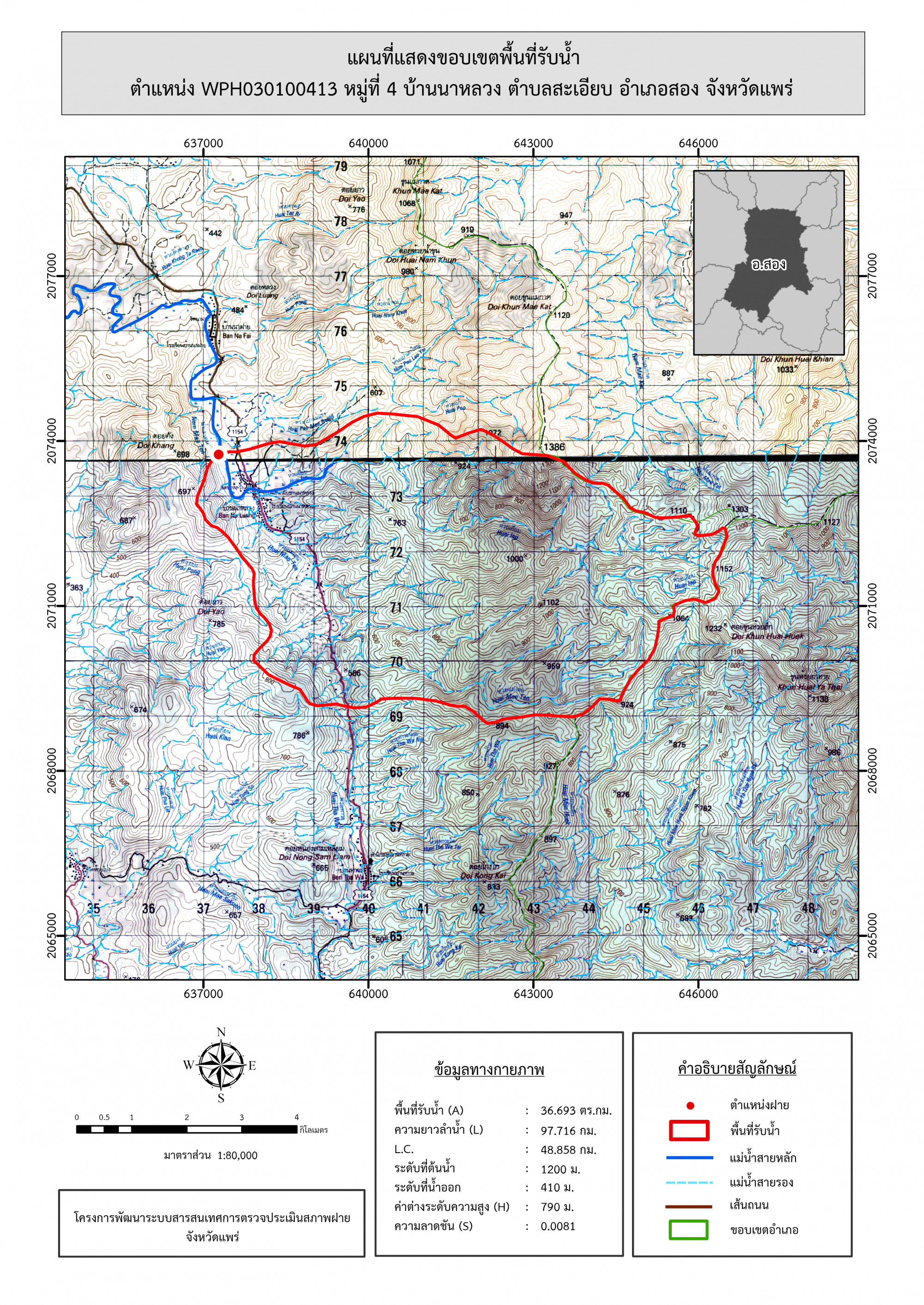 รูปภาพแผนที่แสดงขอบเขตพื้นที่รับน้ำ