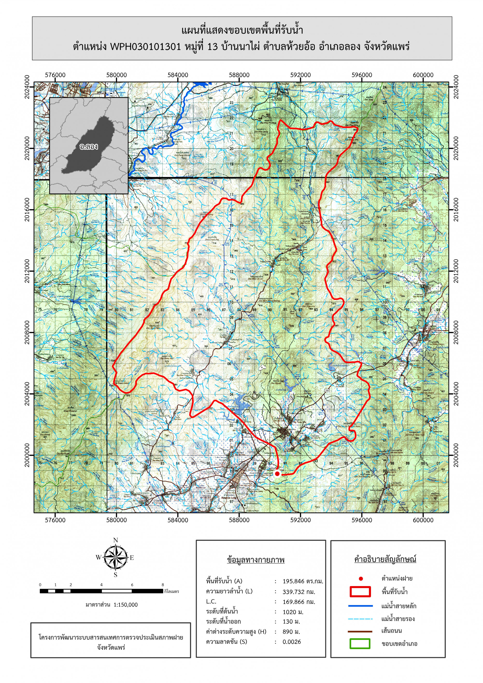 รูปภาพแผนที่แสดงขอบเขตพื้นที่รับน้ำ