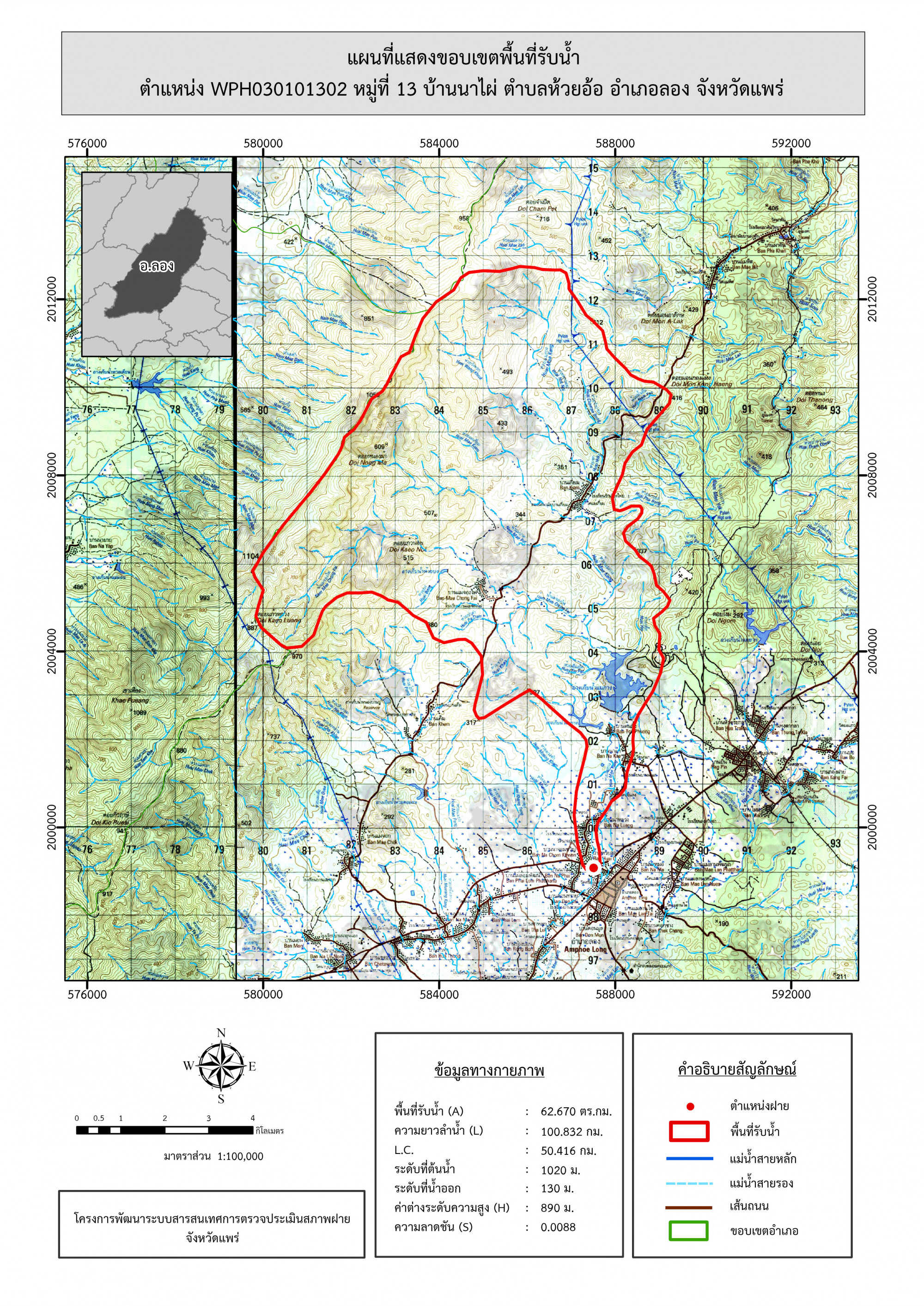 รูปภาพแผนที่แสดงขอบเขตพื้นที่รับน้ำ