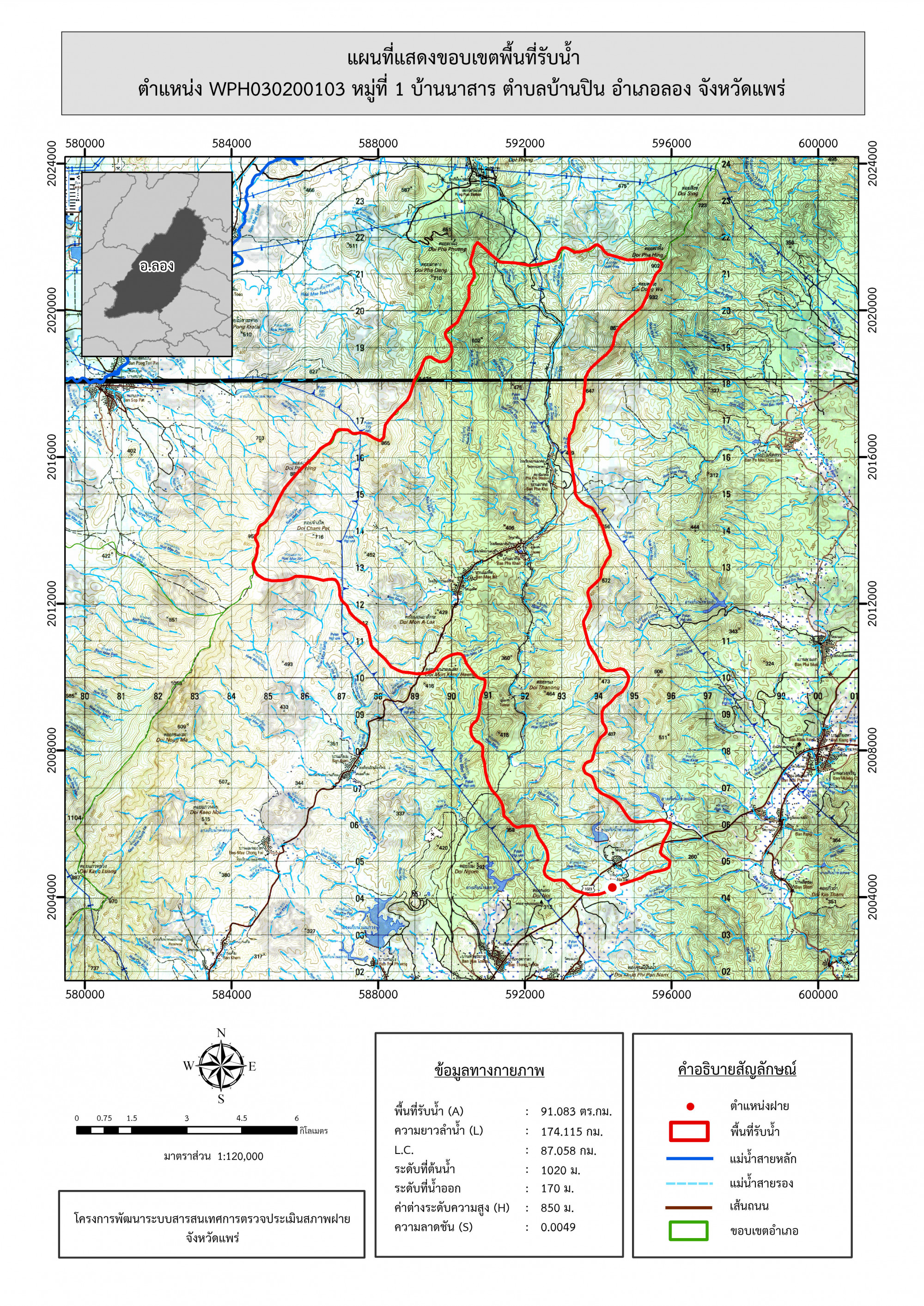 รูปภาพแผนที่แสดงขอบเขตพื้นที่รับน้ำ