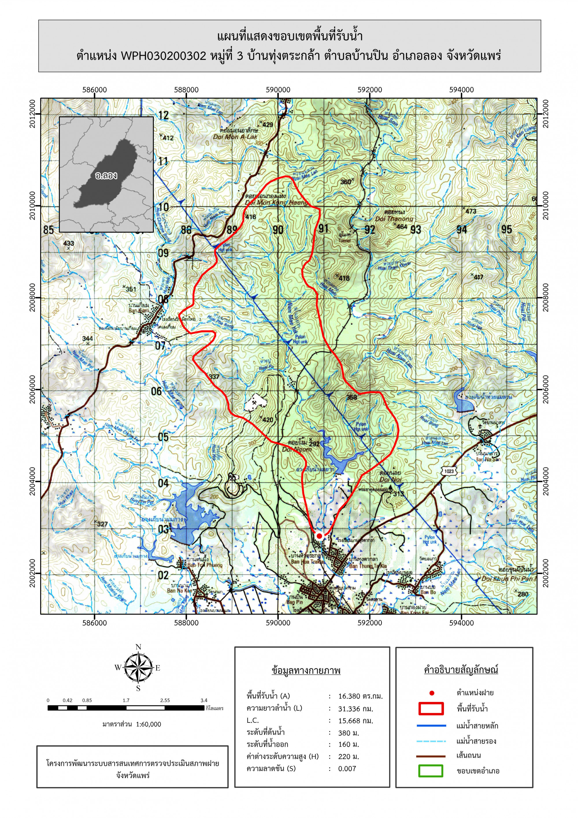 รูปภาพแผนที่แสดงขอบเขตพื้นที่รับน้ำ