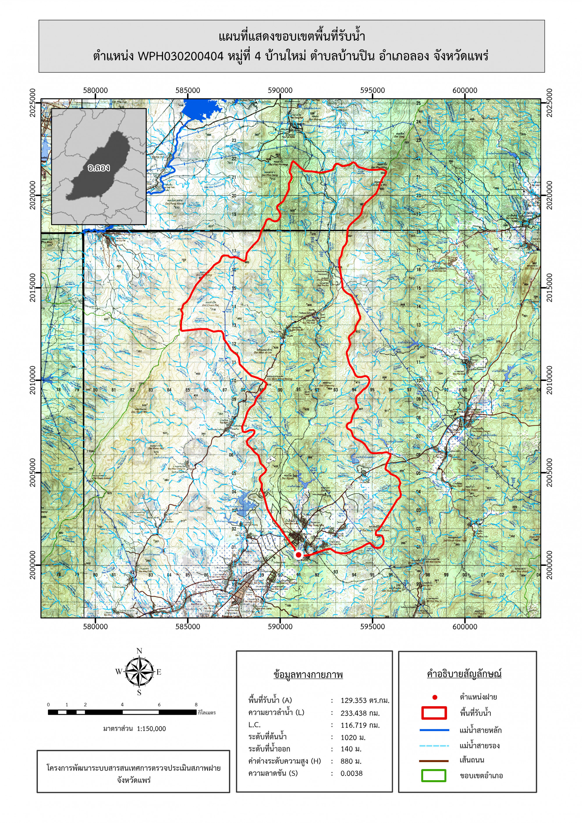 รูปภาพแผนที่แสดงขอบเขตพื้นที่รับน้ำ