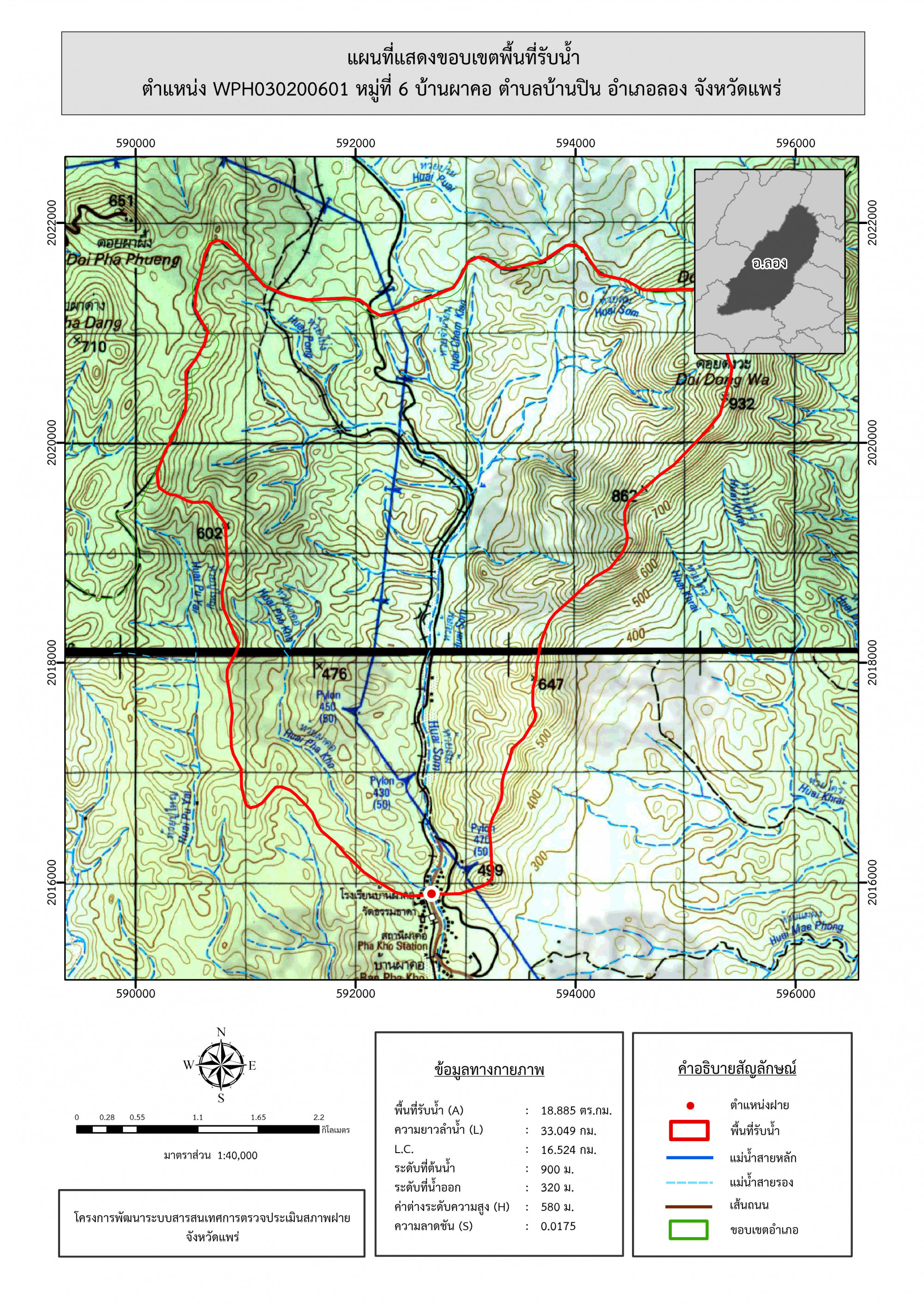 รูปภาพแผนที่แสดงขอบเขตพื้นที่รับน้ำ