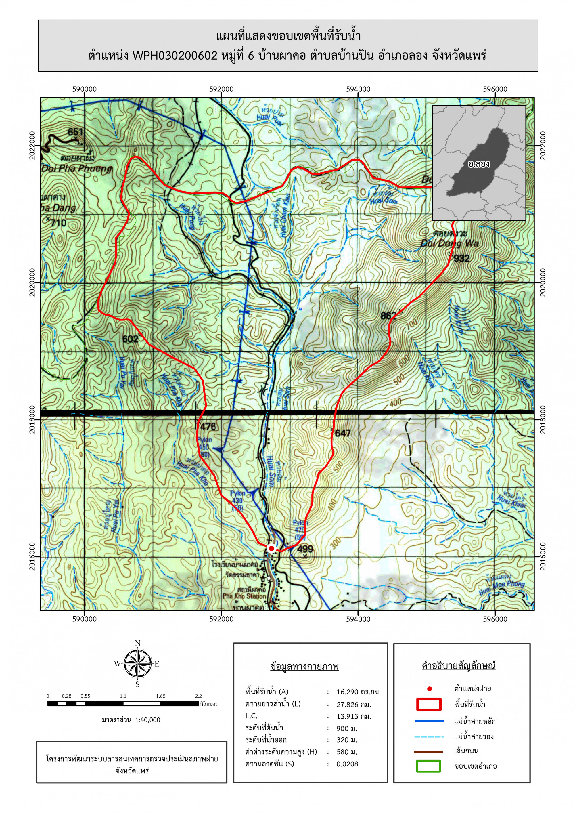 รูปภาพแผนที่แสดงขอบเขตพื้นที่รับน้ำ