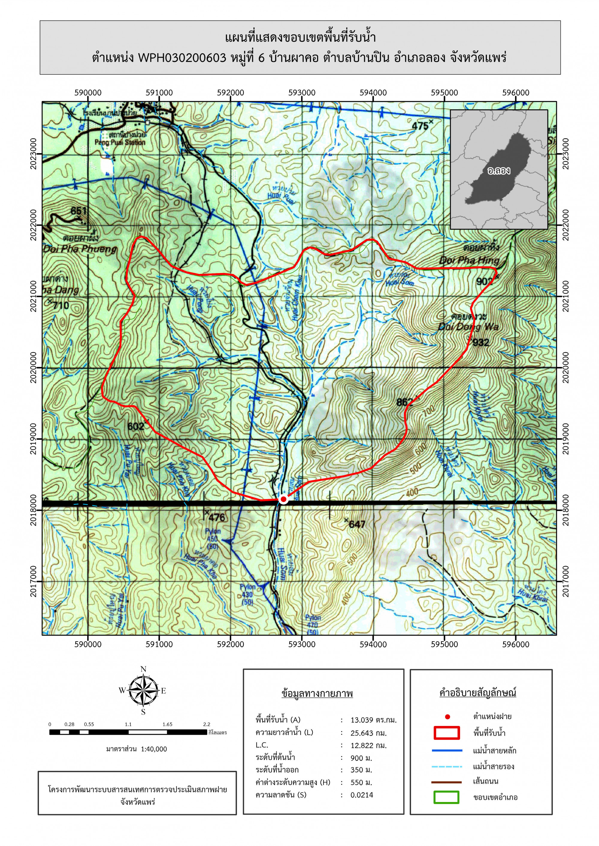 รูปภาพแผนที่แสดงขอบเขตพื้นที่รับน้ำ