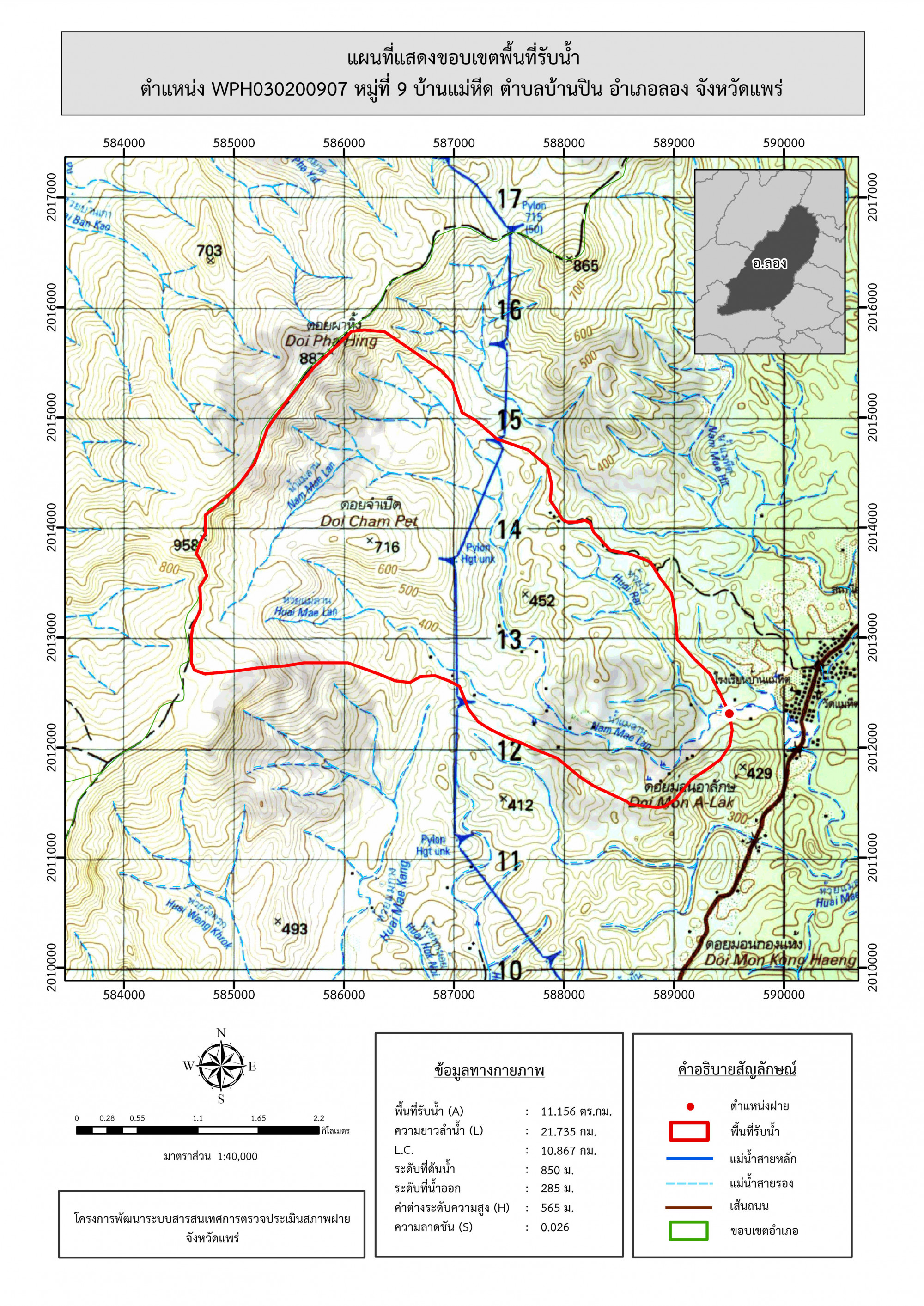 รูปภาพแผนที่แสดงขอบเขตพื้นที่รับน้ำ