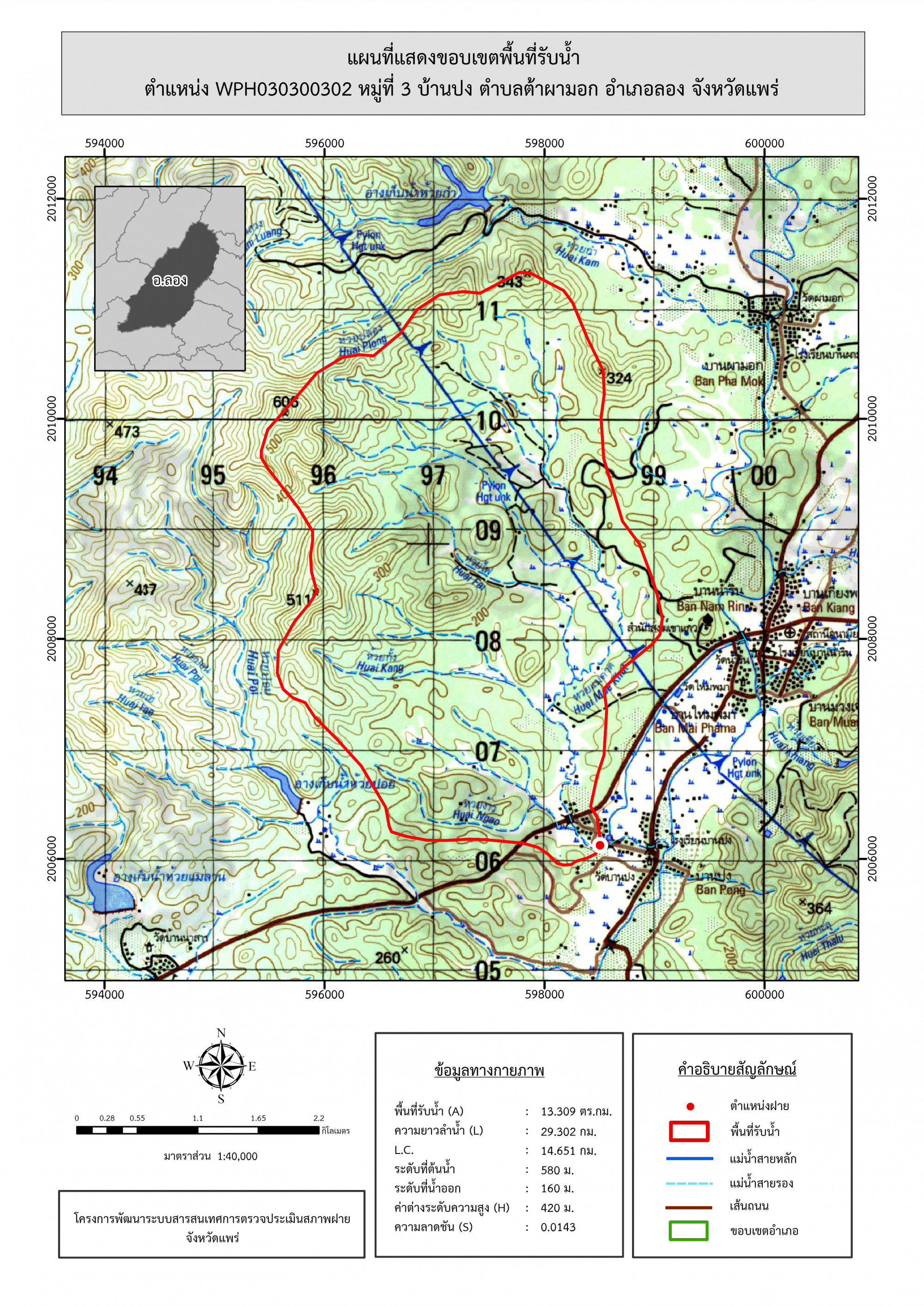 รูปภาพแผนที่แสดงขอบเขตพื้นที่รับน้ำ