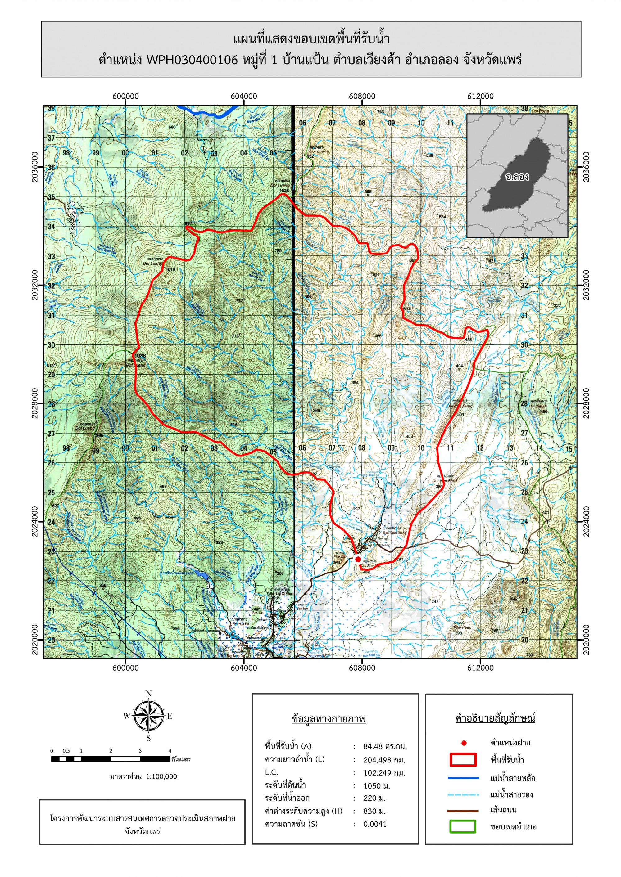 รูปภาพแผนที่แสดงขอบเขตพื้นที่รับน้ำ