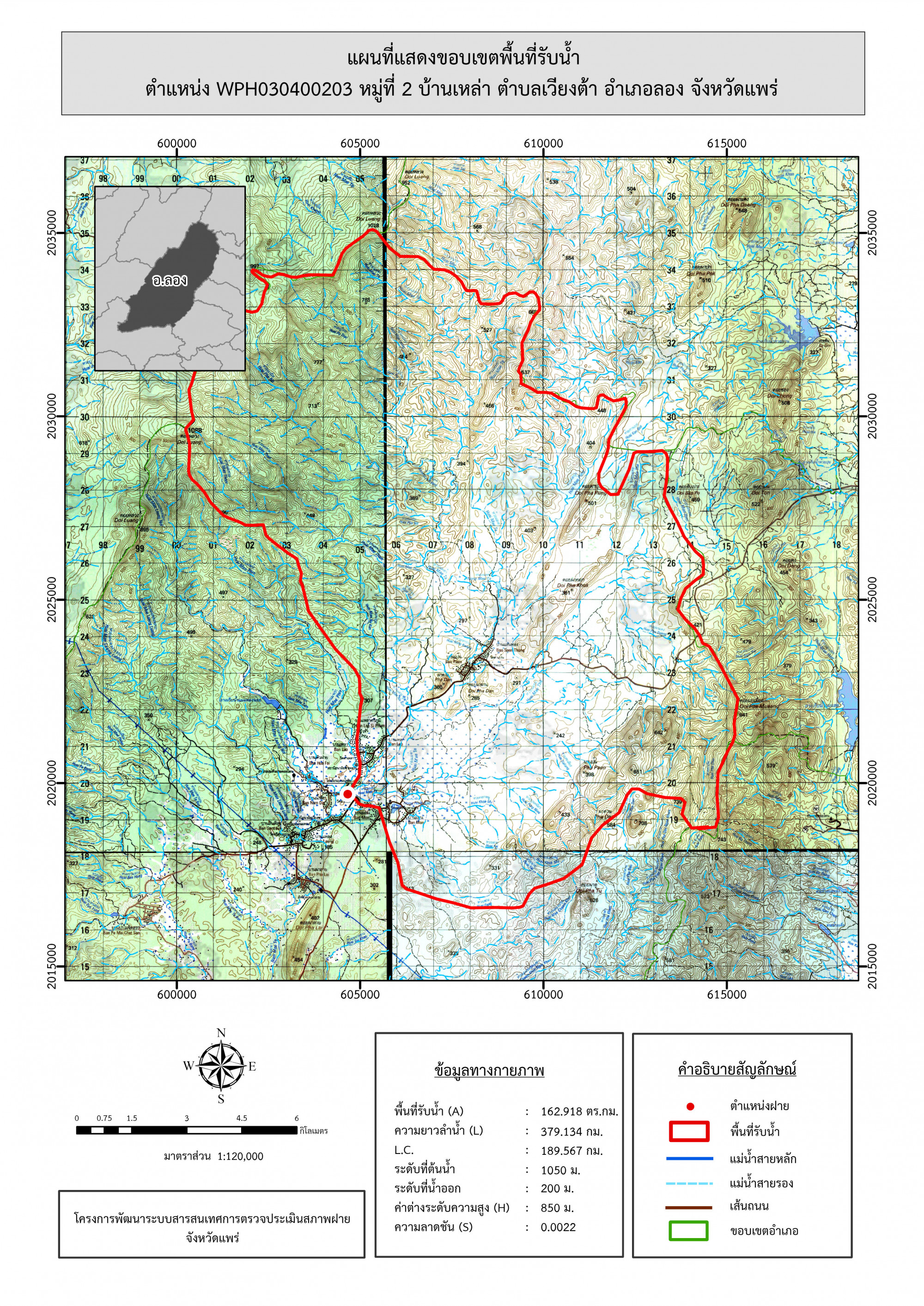 รูปภาพแผนที่แสดงขอบเขตพื้นที่รับน้ำ