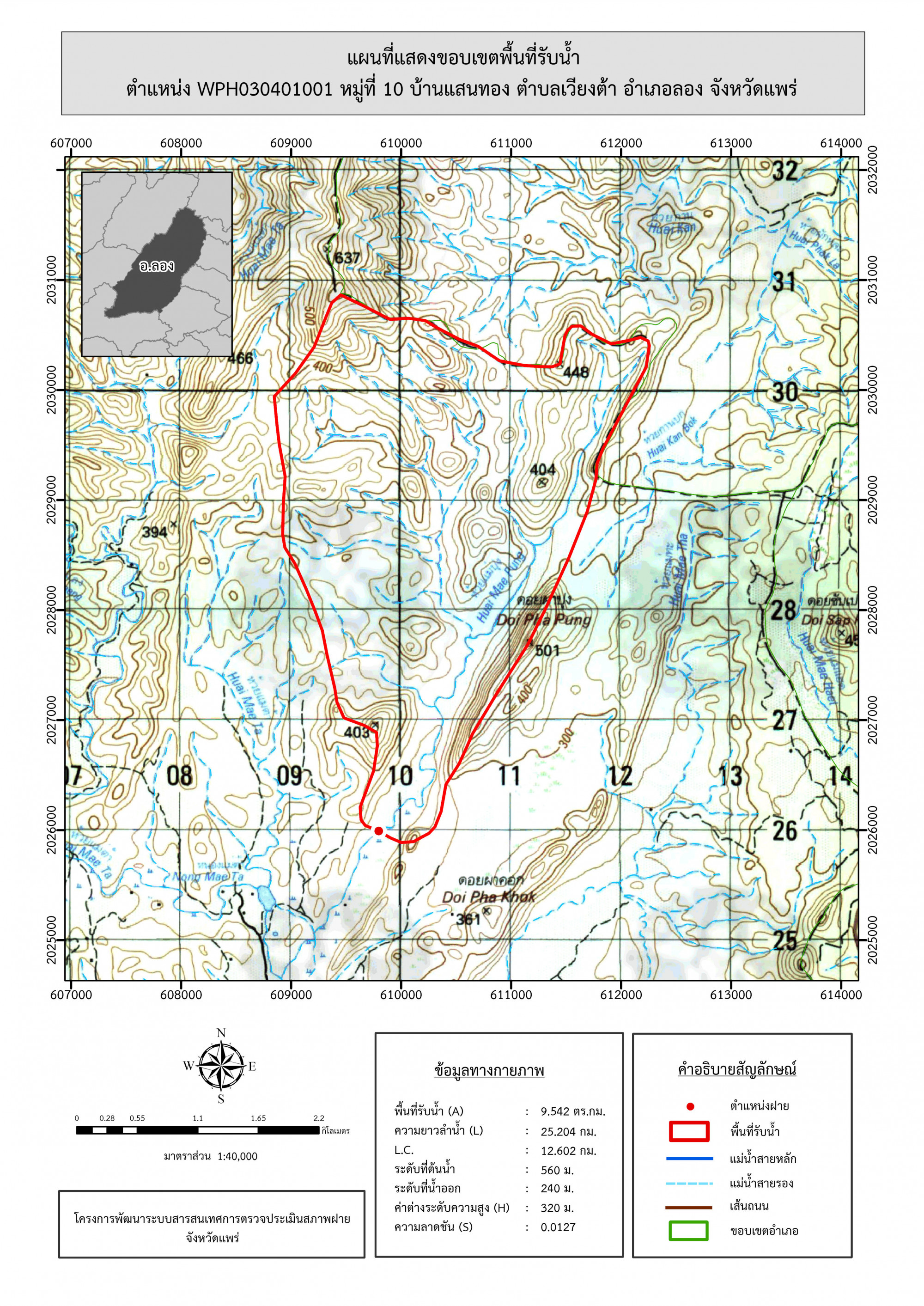 รูปภาพแผนที่แสดงขอบเขตพื้นที่รับน้ำ