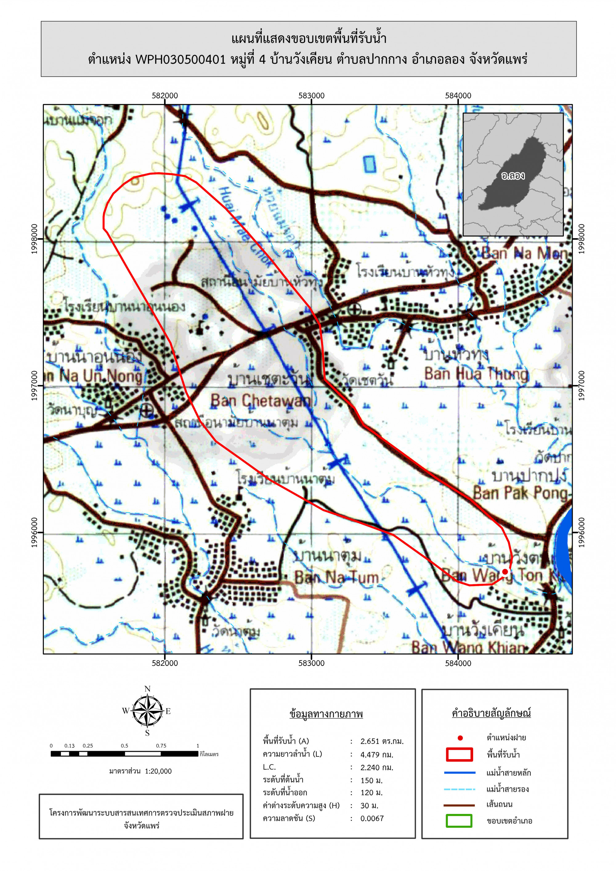 รูปภาพแผนที่แสดงขอบเขตพื้นที่รับน้ำ