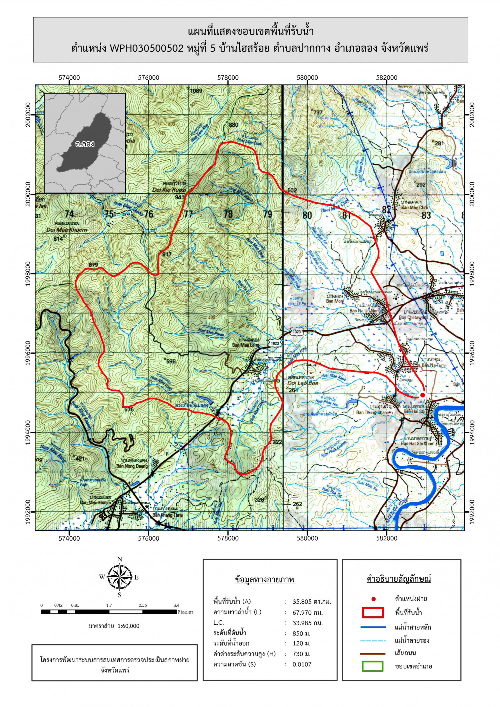 รูปภาพแผนที่แสดงขอบเขตพื้นที่รับน้ำ
