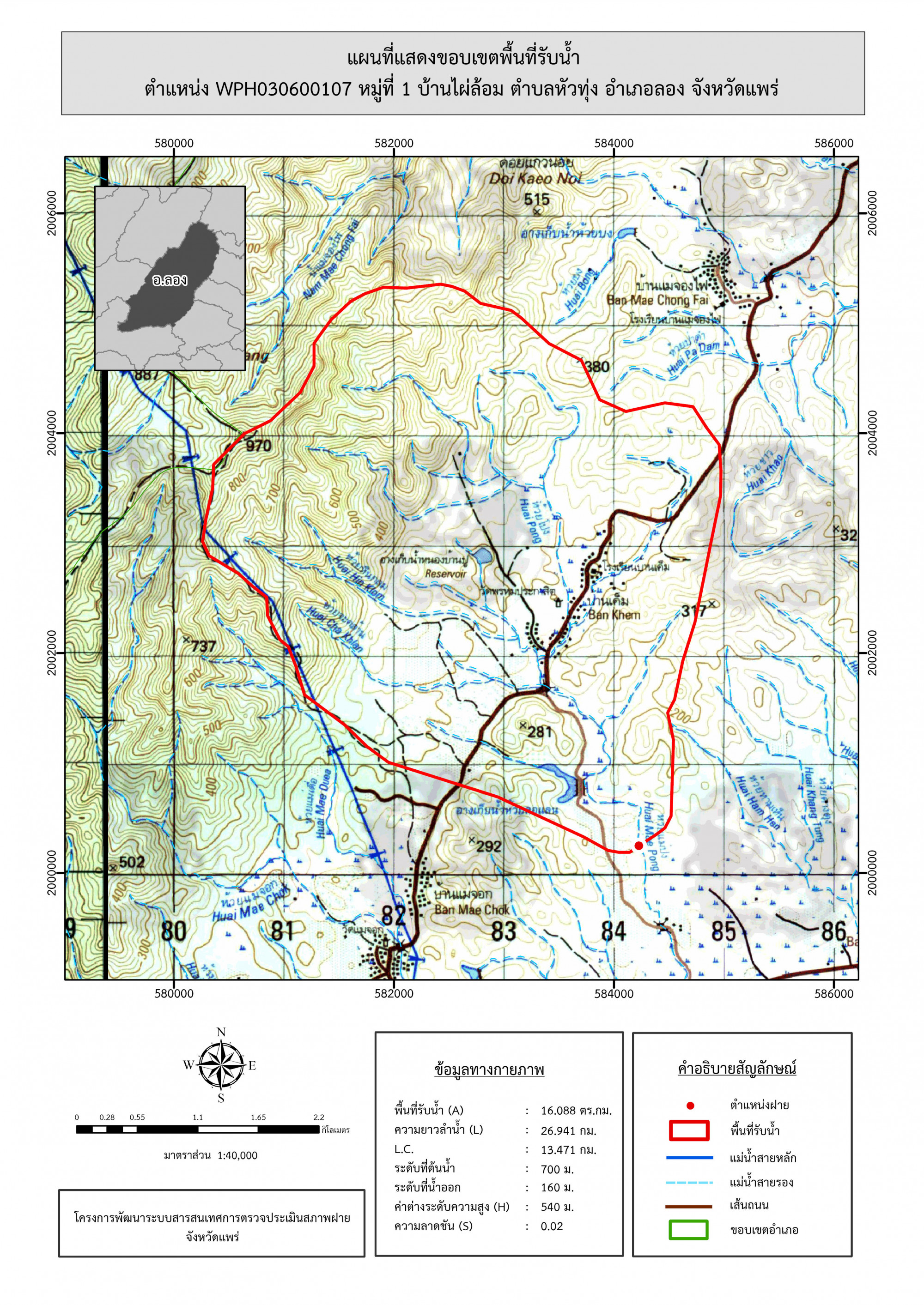 รูปภาพแผนที่แสดงขอบเขตพื้นที่รับน้ำ