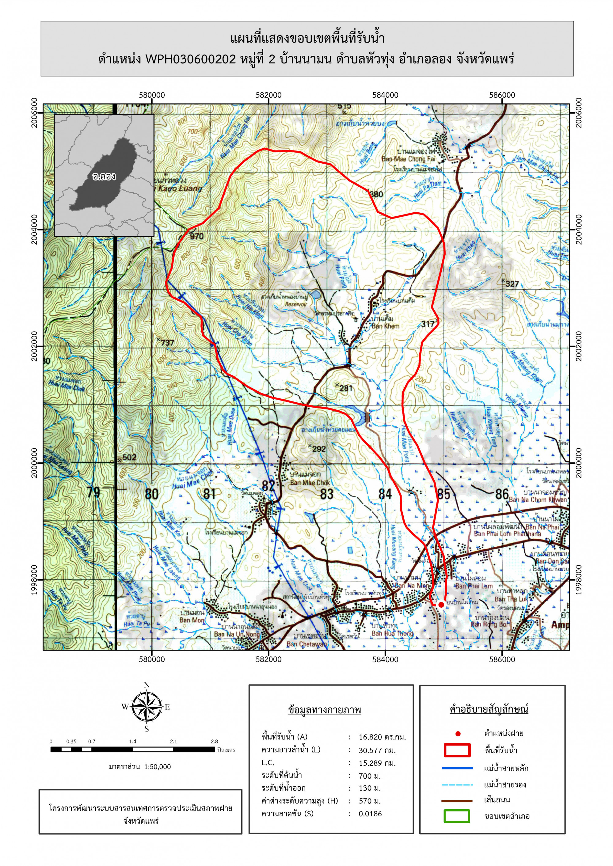 รูปภาพแผนที่แสดงขอบเขตพื้นที่รับน้ำ