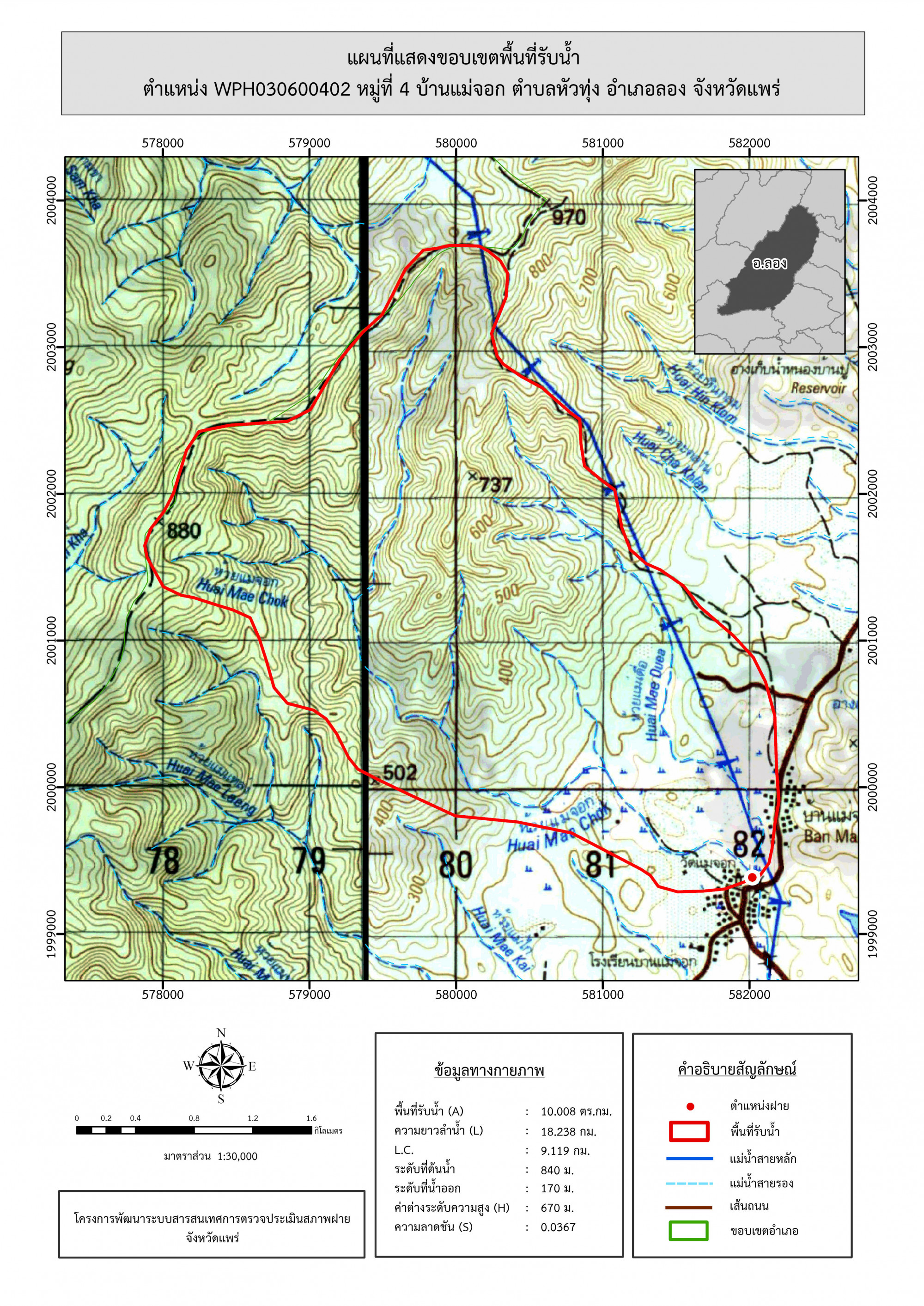 รูปภาพแผนที่แสดงขอบเขตพื้นที่รับน้ำ