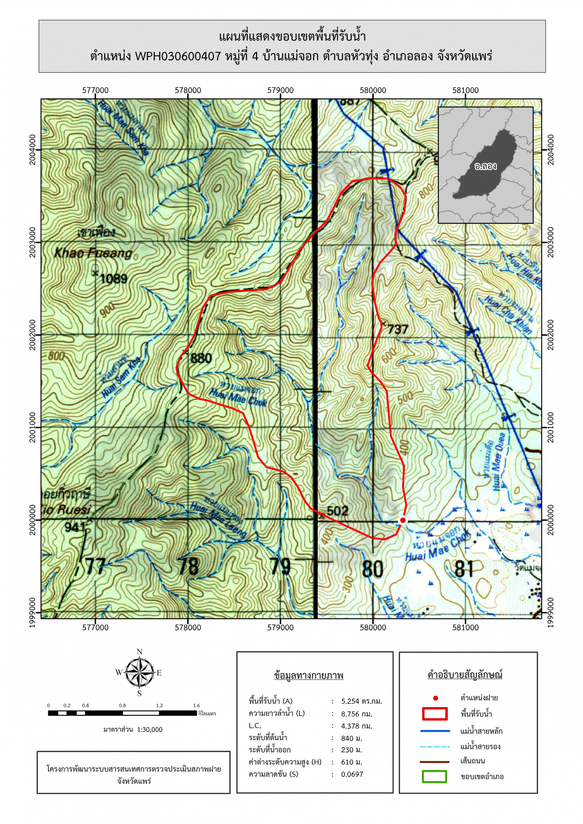 รูปภาพแผนที่แสดงขอบเขตพื้นที่รับน้ำ