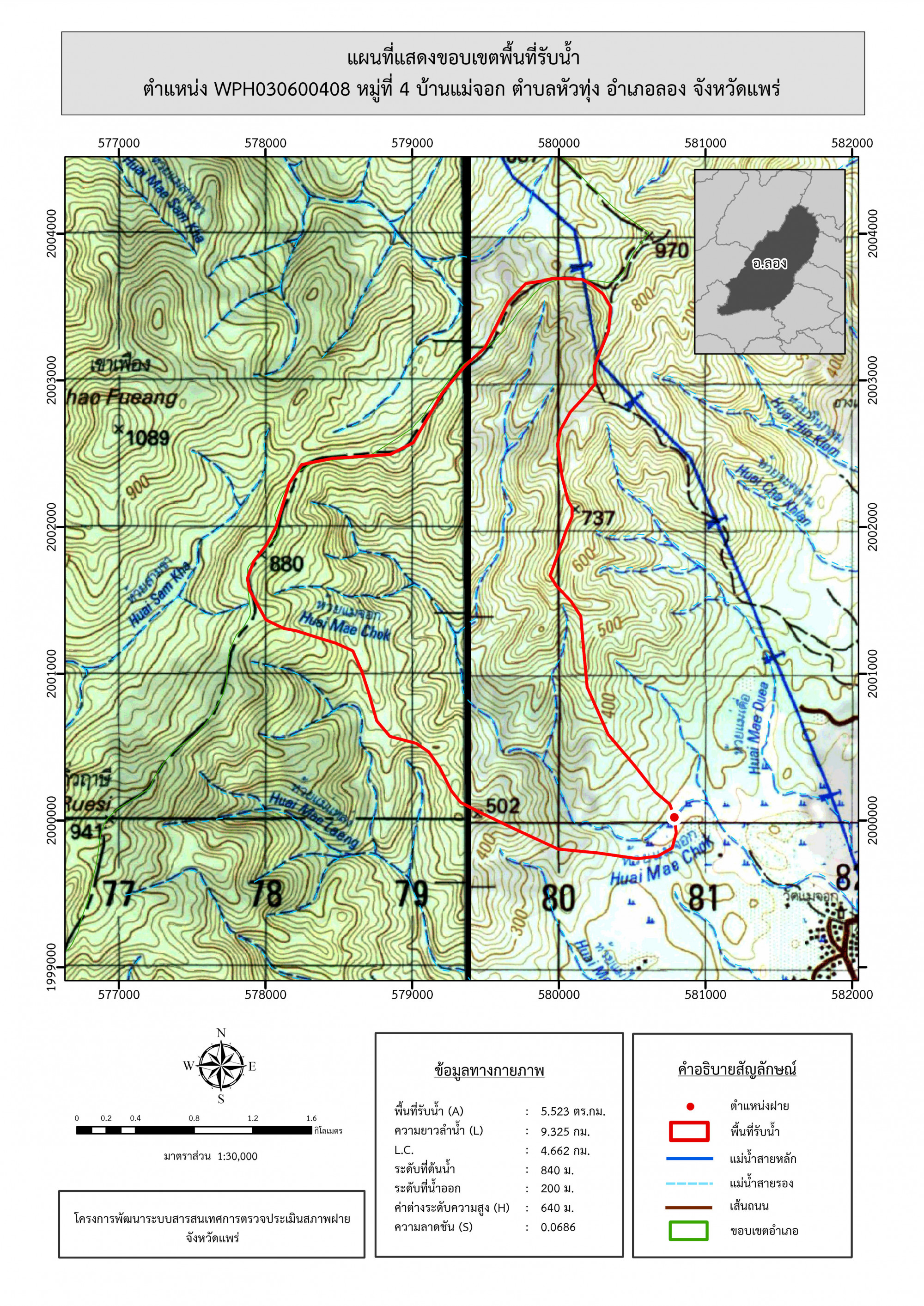 รูปภาพแผนที่แสดงขอบเขตพื้นที่รับน้ำ
