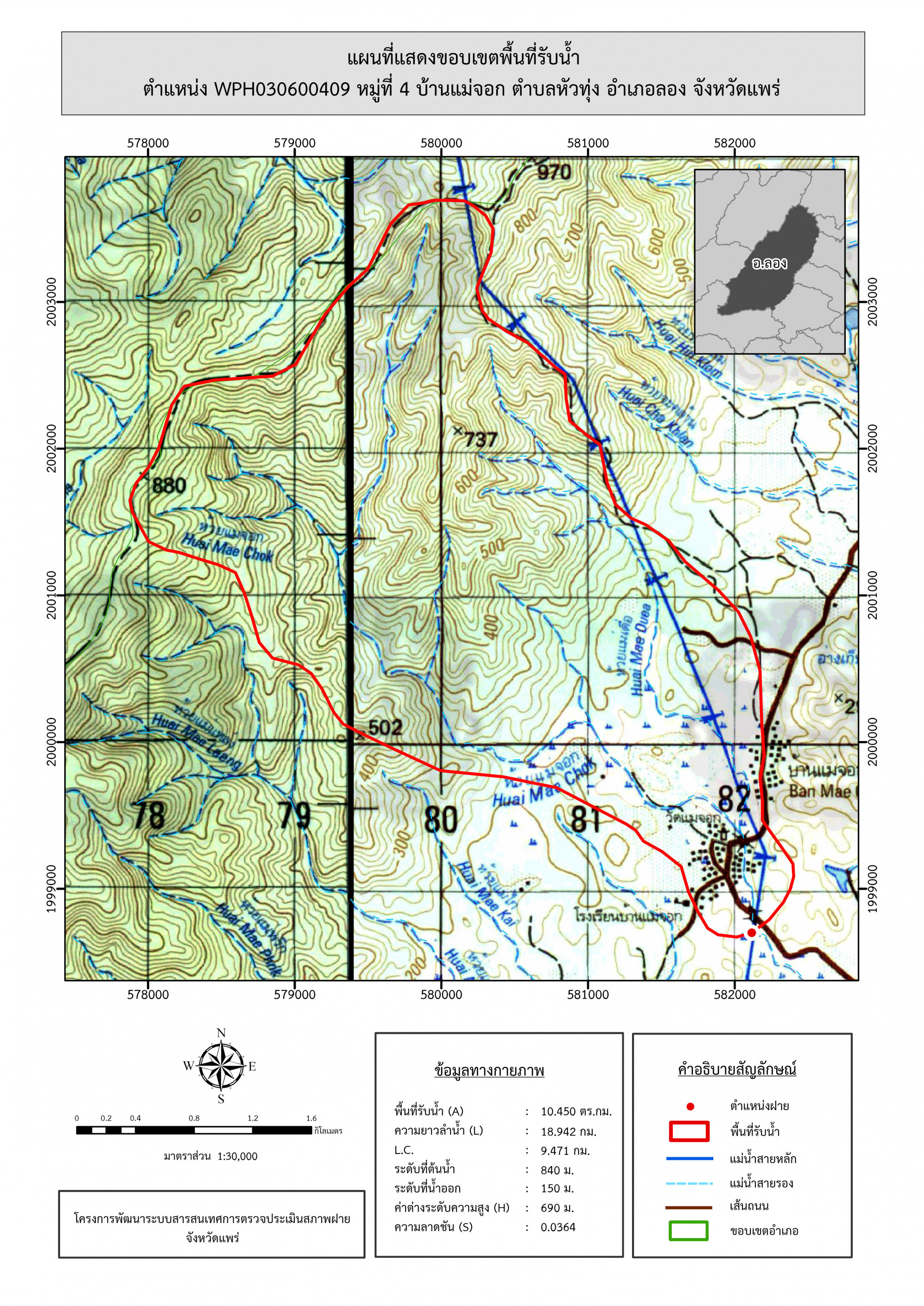 รูปภาพแผนที่แสดงขอบเขตพื้นที่รับน้ำ
