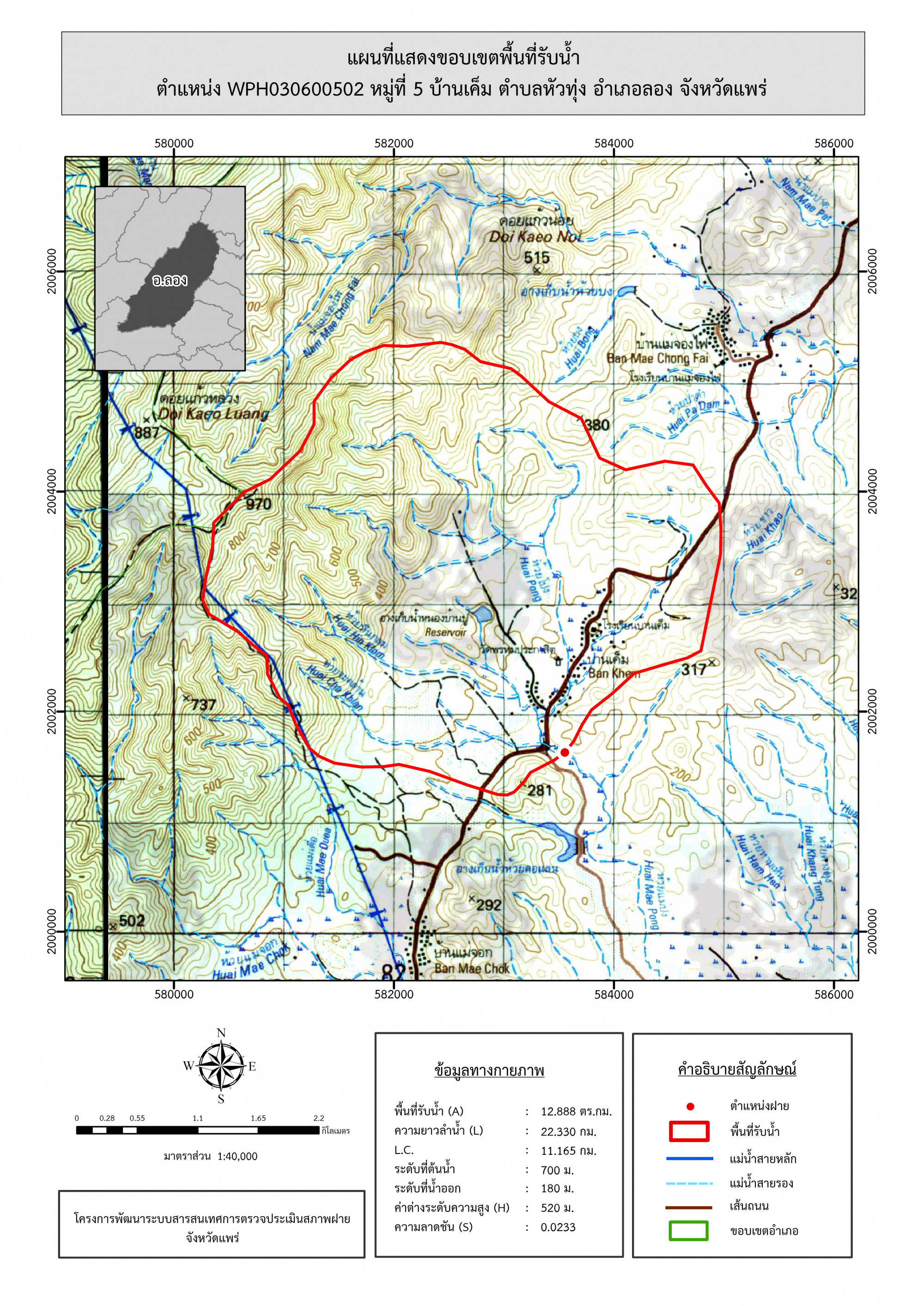 รูปภาพแผนที่แสดงขอบเขตพื้นที่รับน้ำ