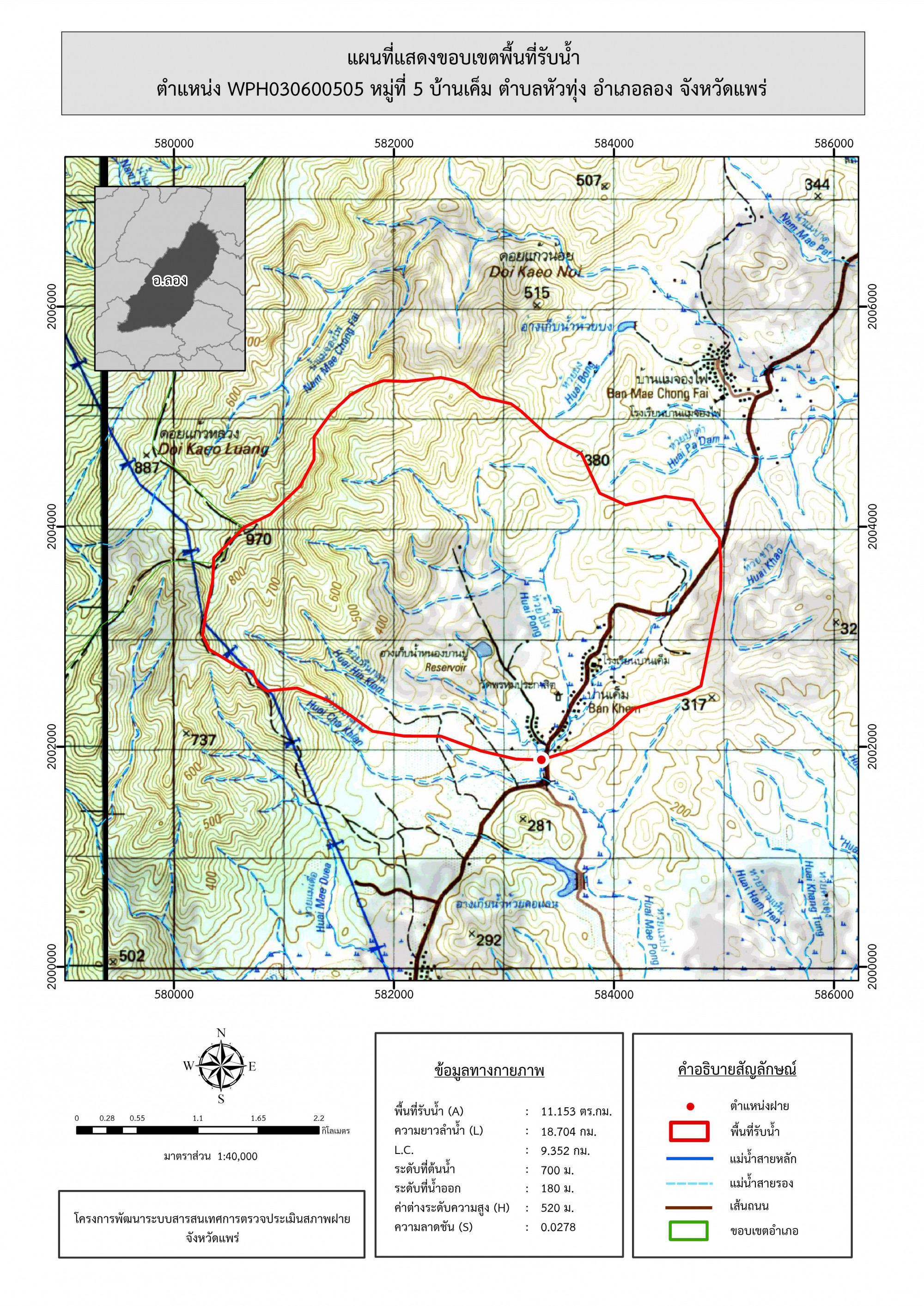 รูปภาพแผนที่แสดงขอบเขตพื้นที่รับน้ำ