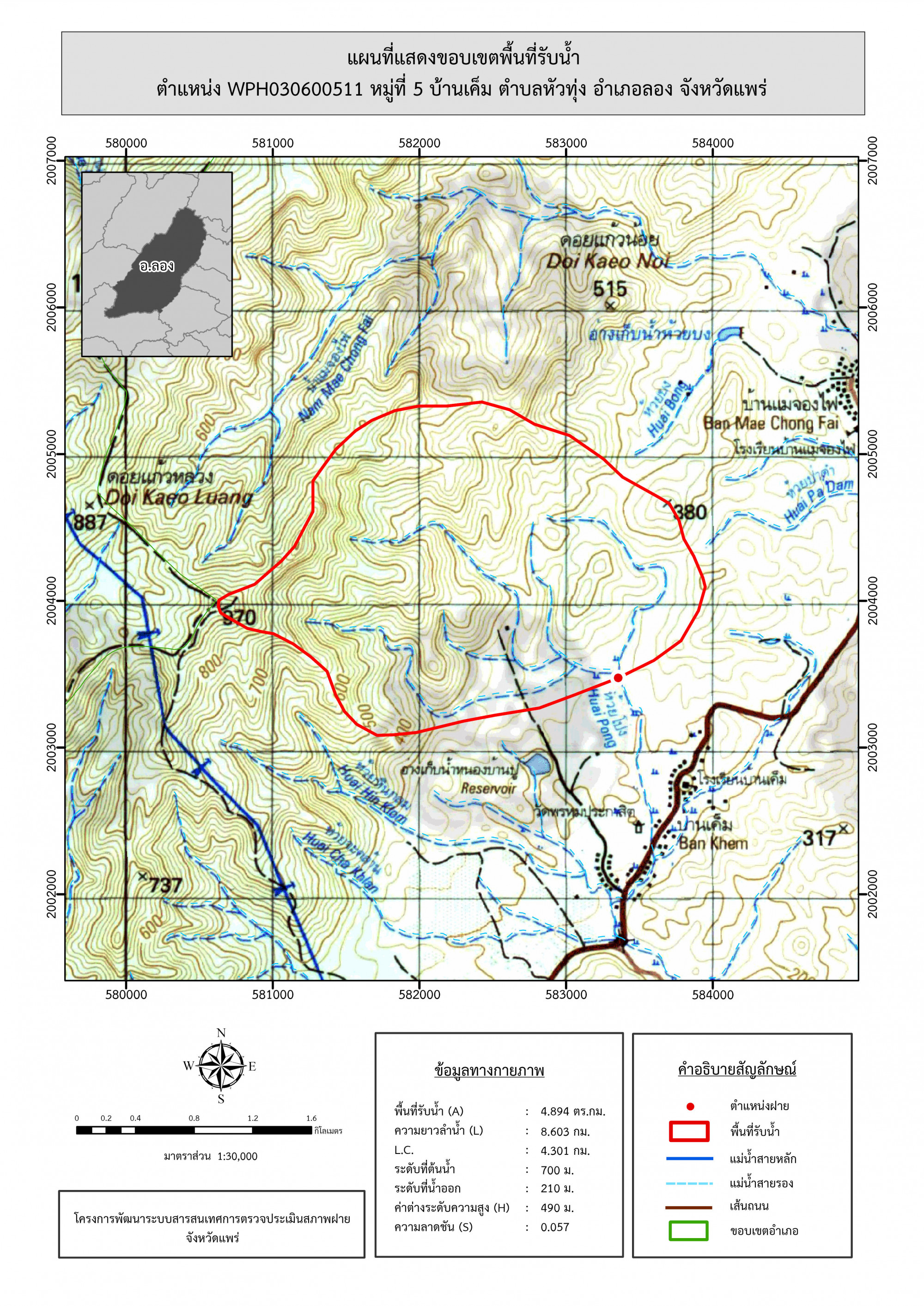 รูปภาพแผนที่แสดงขอบเขตพื้นที่รับน้ำ