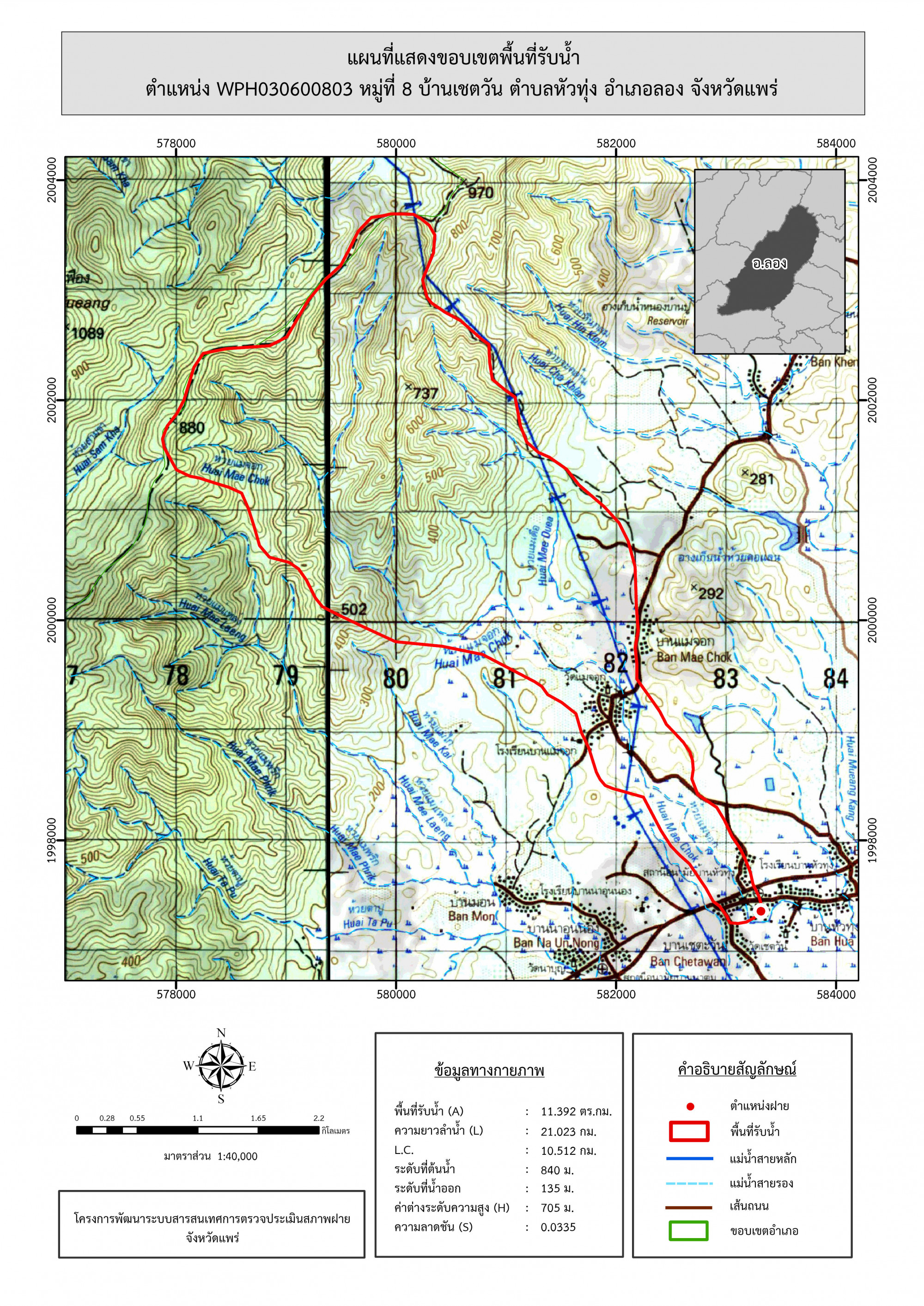 รูปภาพแผนที่แสดงขอบเขตพื้นที่รับน้ำ