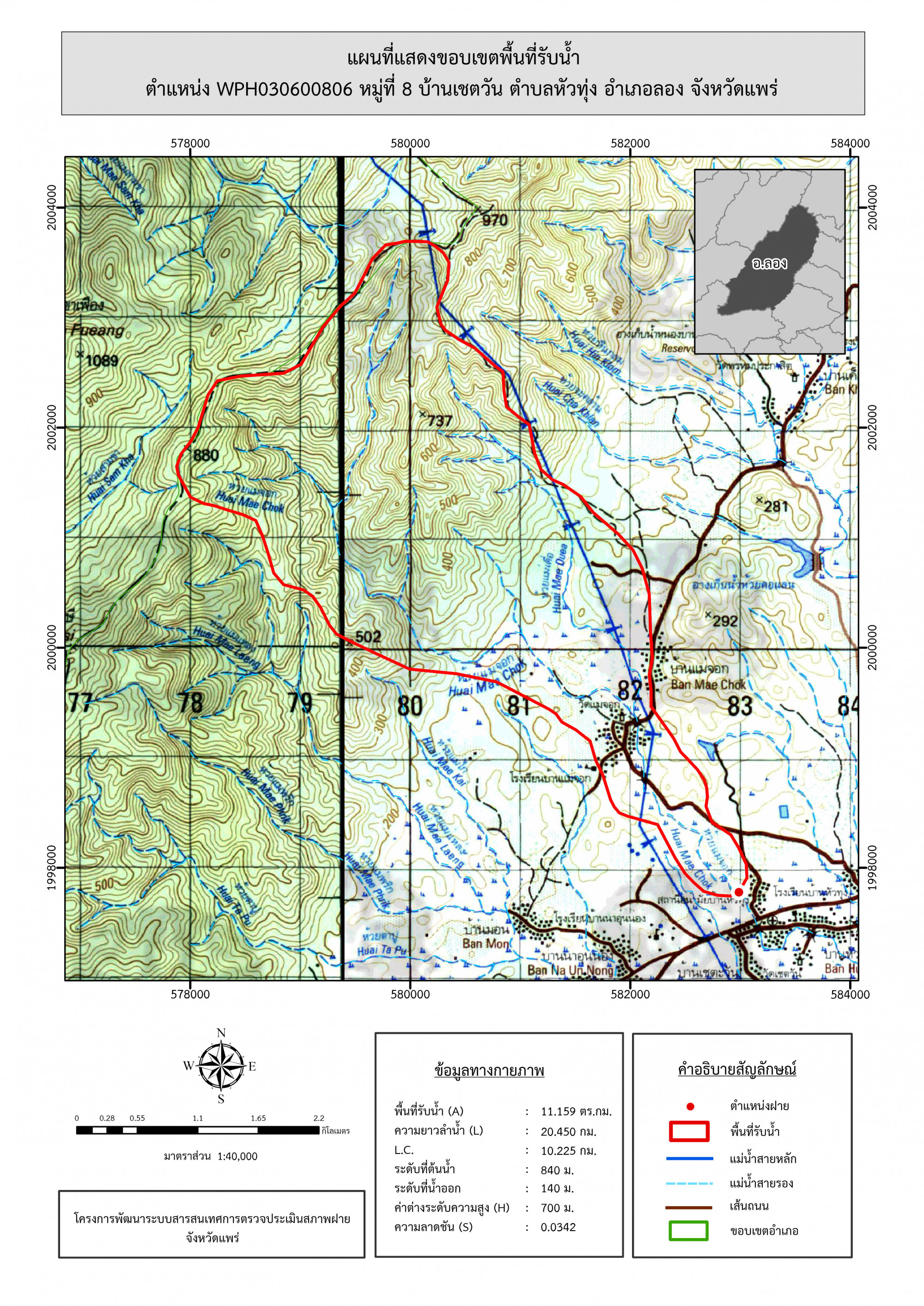 รูปภาพแผนที่แสดงขอบเขตพื้นที่รับน้ำ