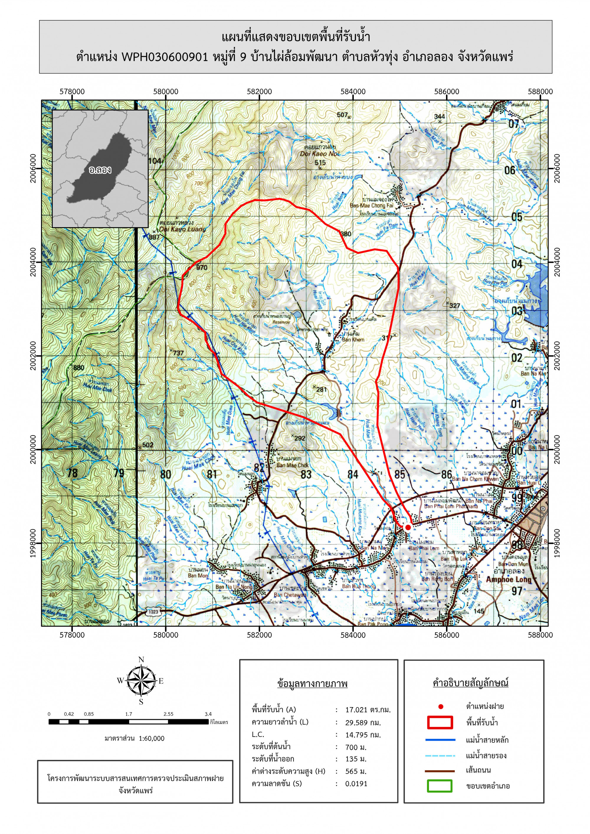 รูปภาพแผนที่แสดงขอบเขตพื้นที่รับน้ำ