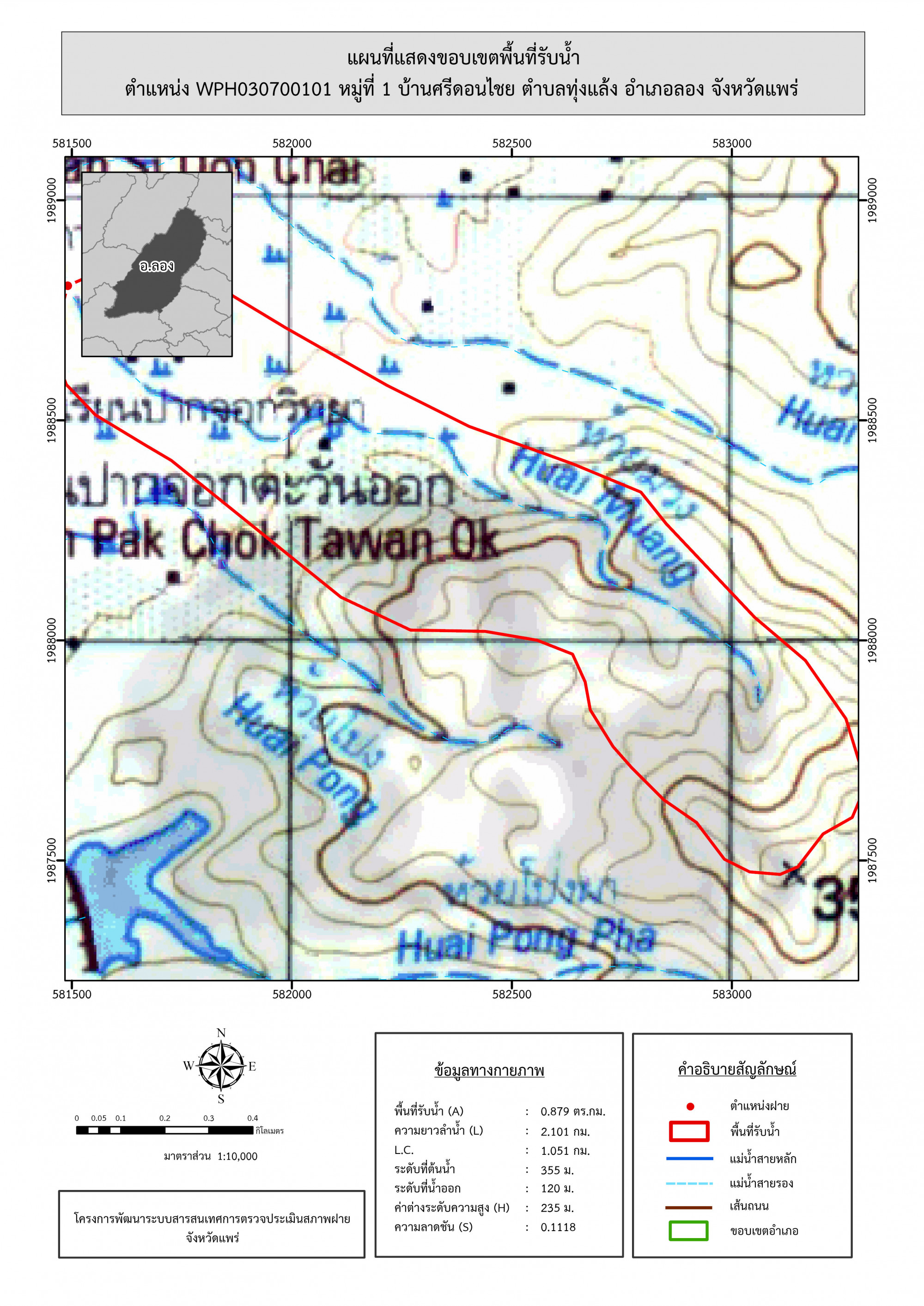 รูปภาพแผนที่แสดงขอบเขตพื้นที่รับน้ำ