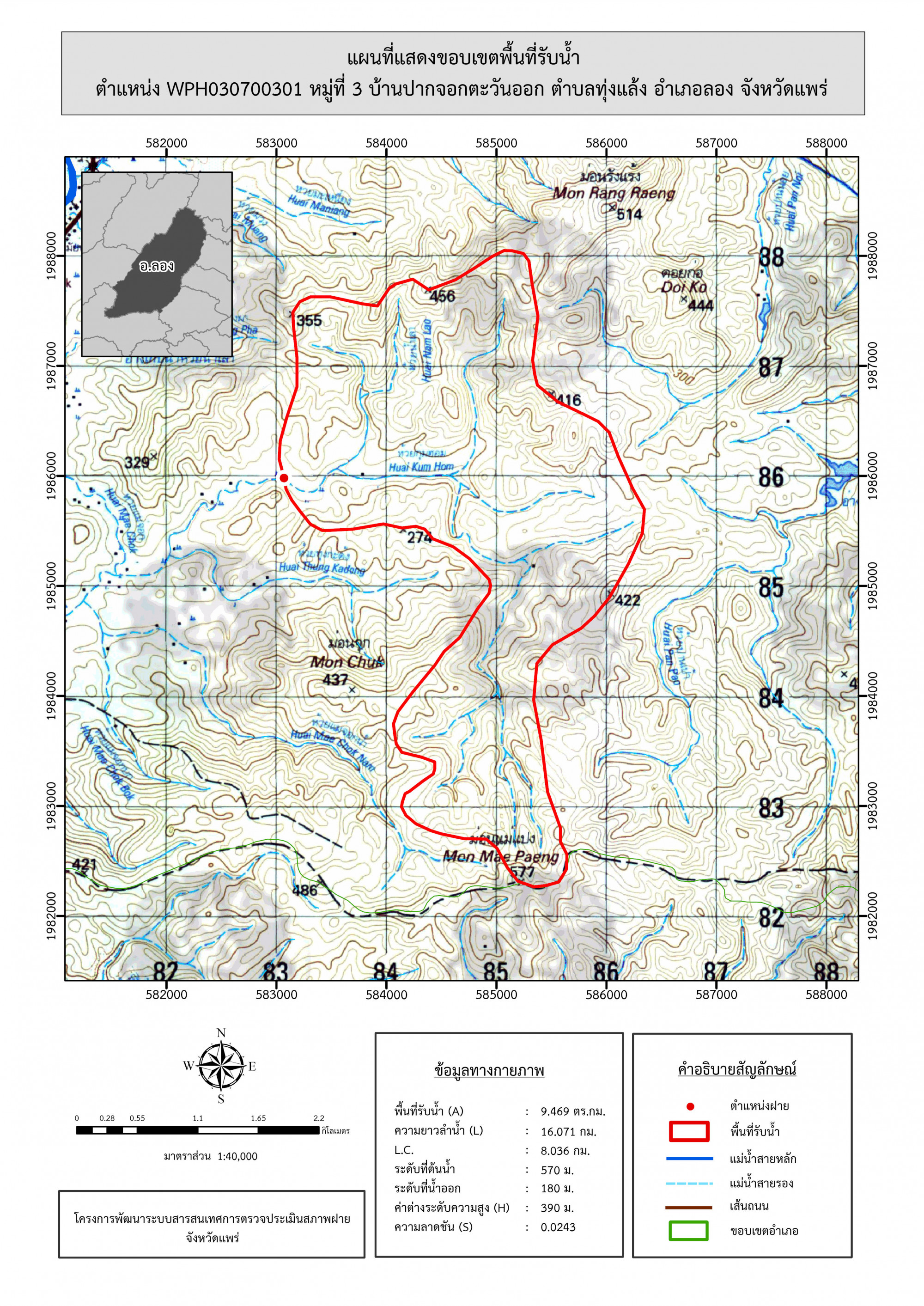 รูปภาพแผนที่แสดงขอบเขตพื้นที่รับน้ำ