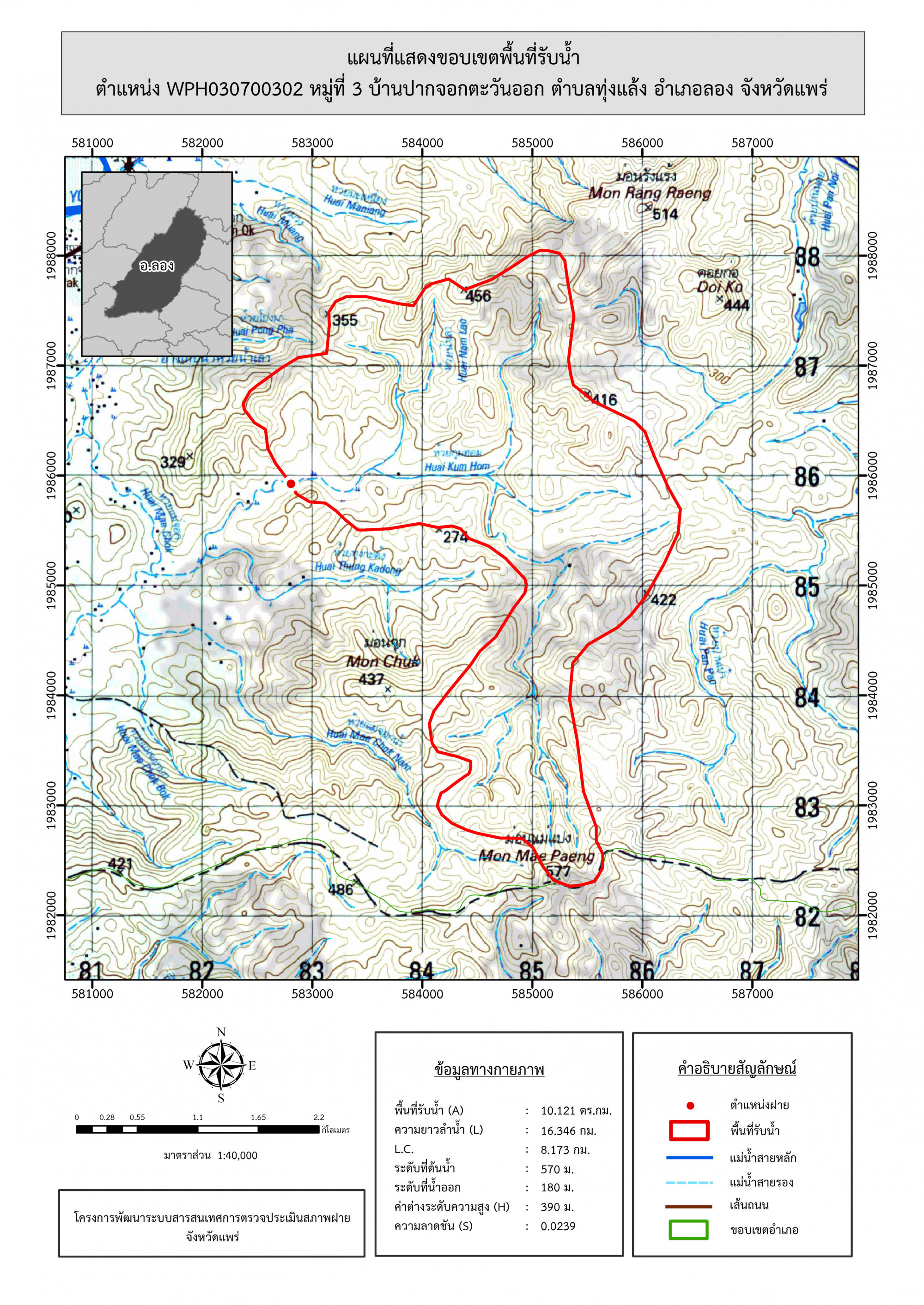 รูปภาพแผนที่แสดงขอบเขตพื้นที่รับน้ำ