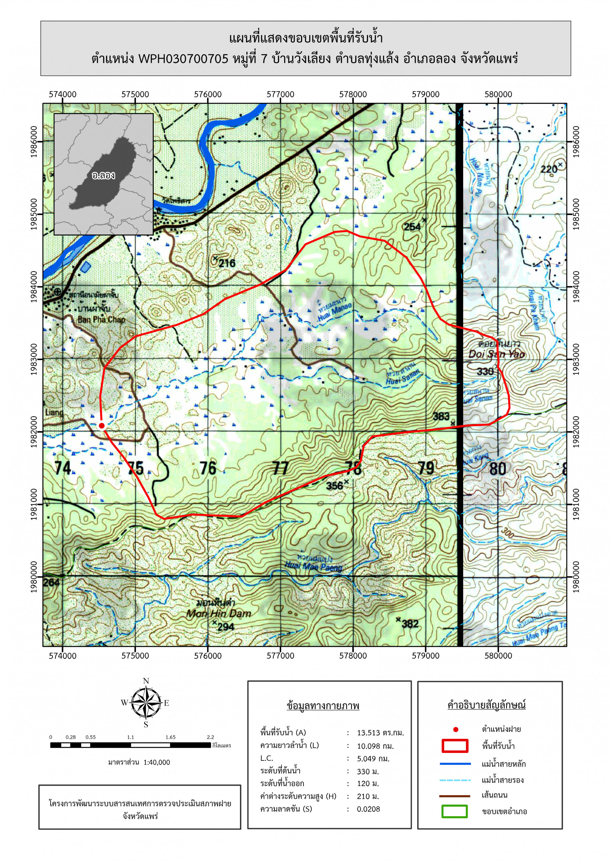 รูปภาพแผนที่แสดงขอบเขตพื้นที่รับน้ำ