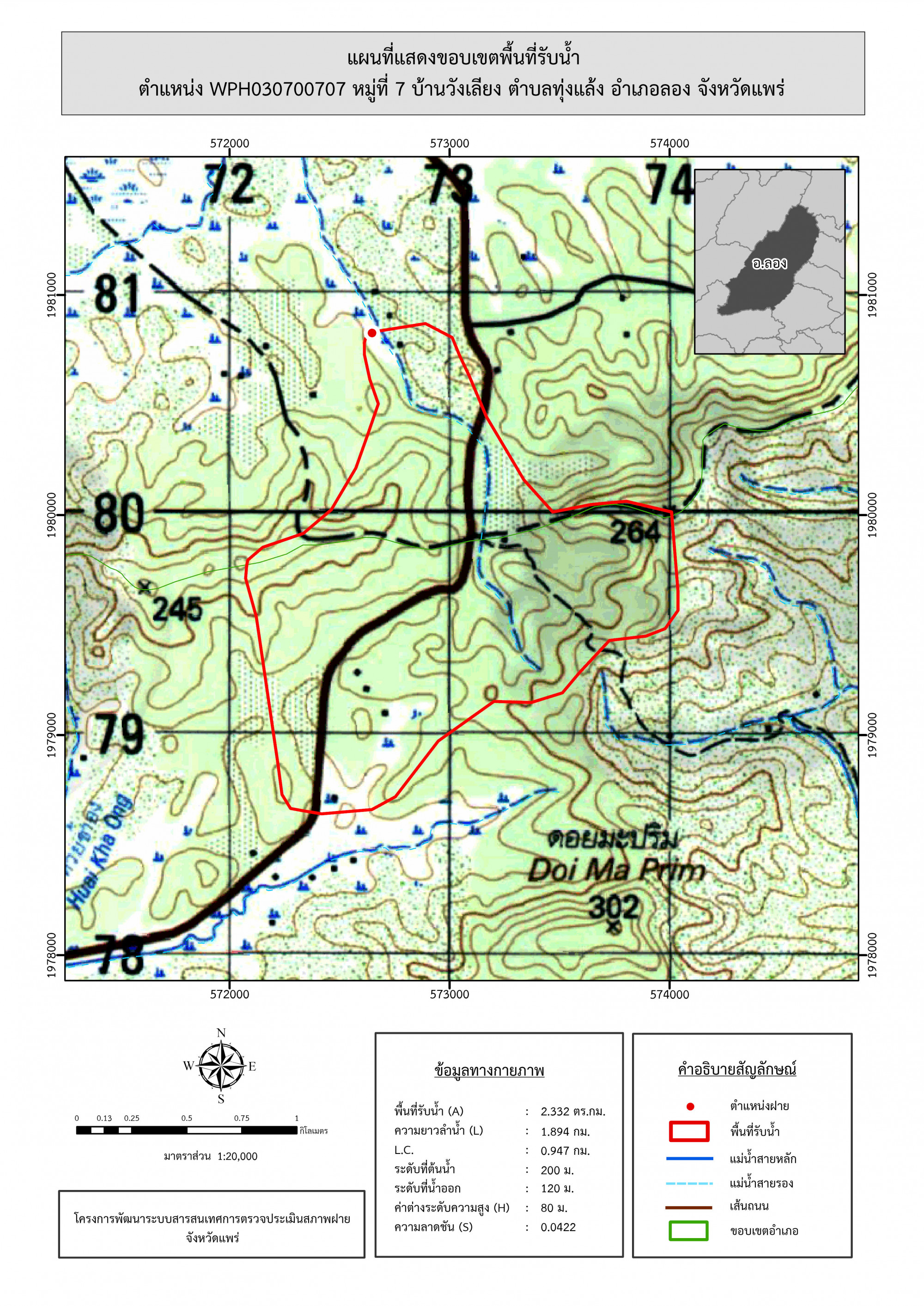 รูปภาพแผนที่แสดงขอบเขตพื้นที่รับน้ำ